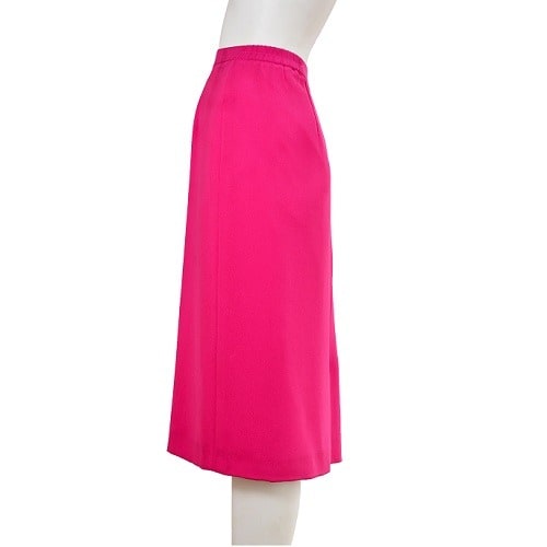 Eastex Womens Bright Pink Pencil Skirt A very smart and flattering bright pink pencil skirt; ideal for all smart daywear particularly when combined with its matching jacket. this skirt features a back button and zip fastening, a part elasticated waistband and lining. length approx 63cm.. Pencil skirt. Plain. 100% polyester. Machine wash 30 & deg;c