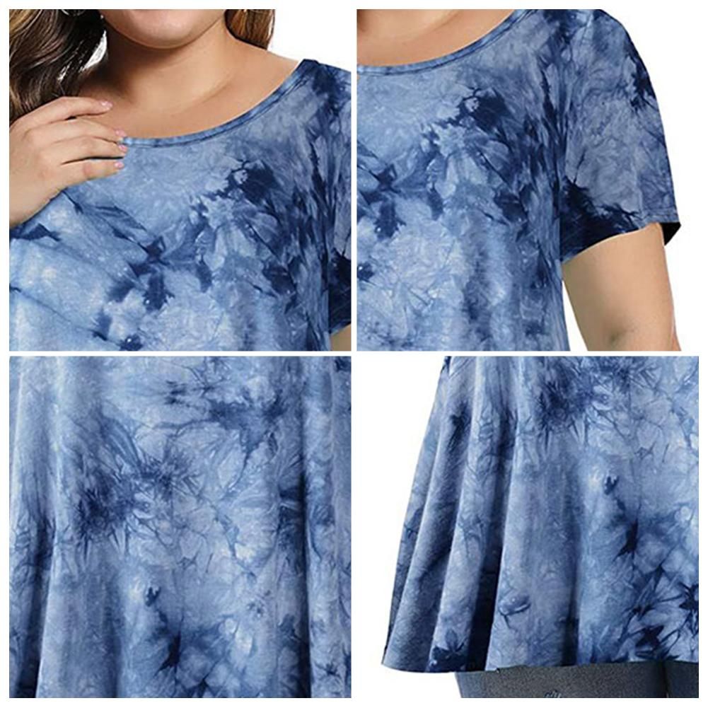 Buy Women Plus Size Tunic Tops Floral Print Short Sleeves Vintage Flared Casual Loose Blouse Blue 6XL in Nigeria