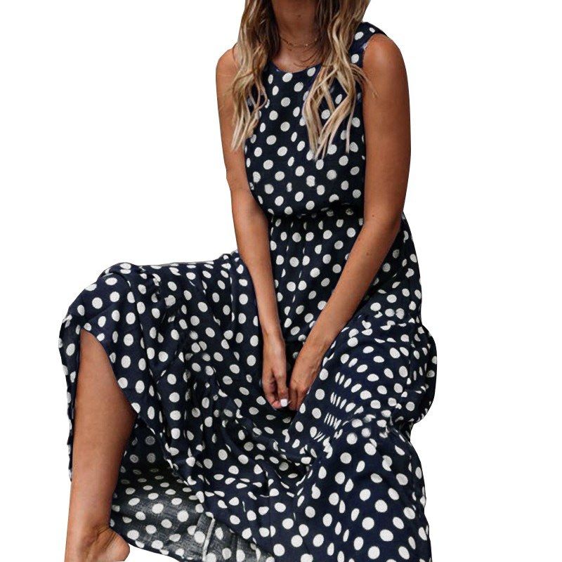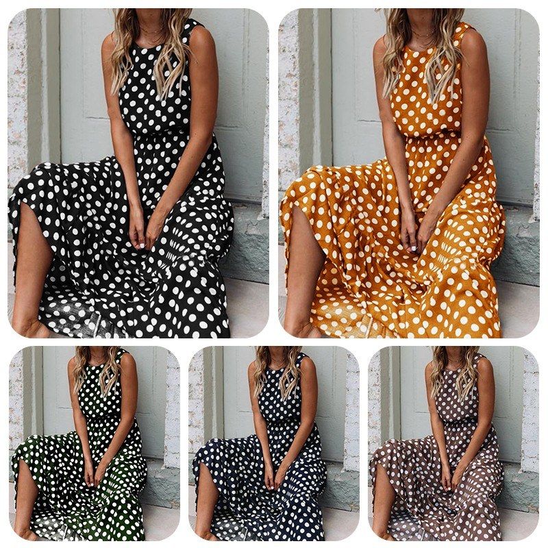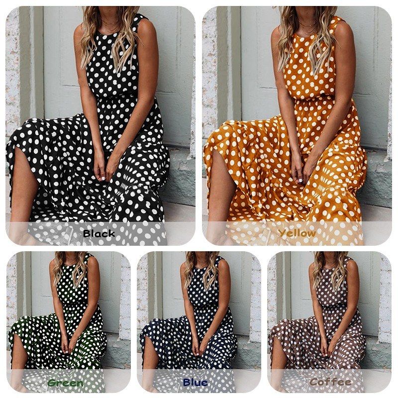 This sundress in polka dots pattern, cute and stylish, features sleeveless, O-neck, and flowy hem, fit for summer, vacations, beach, street, holidays, party, etc.