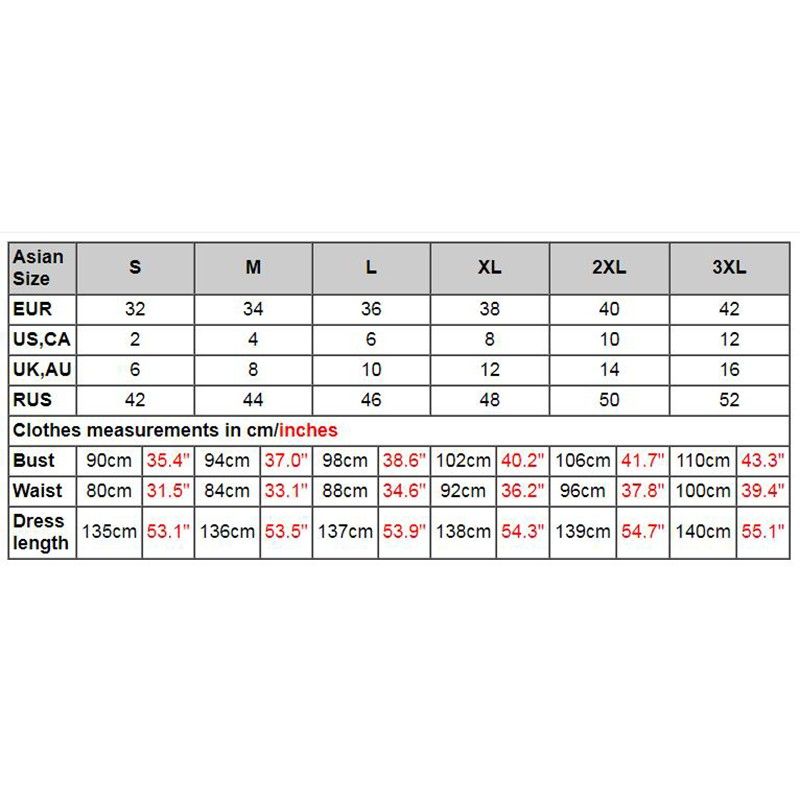 Size: S (US2 UK/AU6 EU32) / M (US4 UK/AU8 EU34) / L (US6 UK/AU10 EU36) / XL (US8 UK/AU12 EU38) / 2XL (US10 UK/AU14 EU40) / 3XL (US12 UK/AU16 EU42)