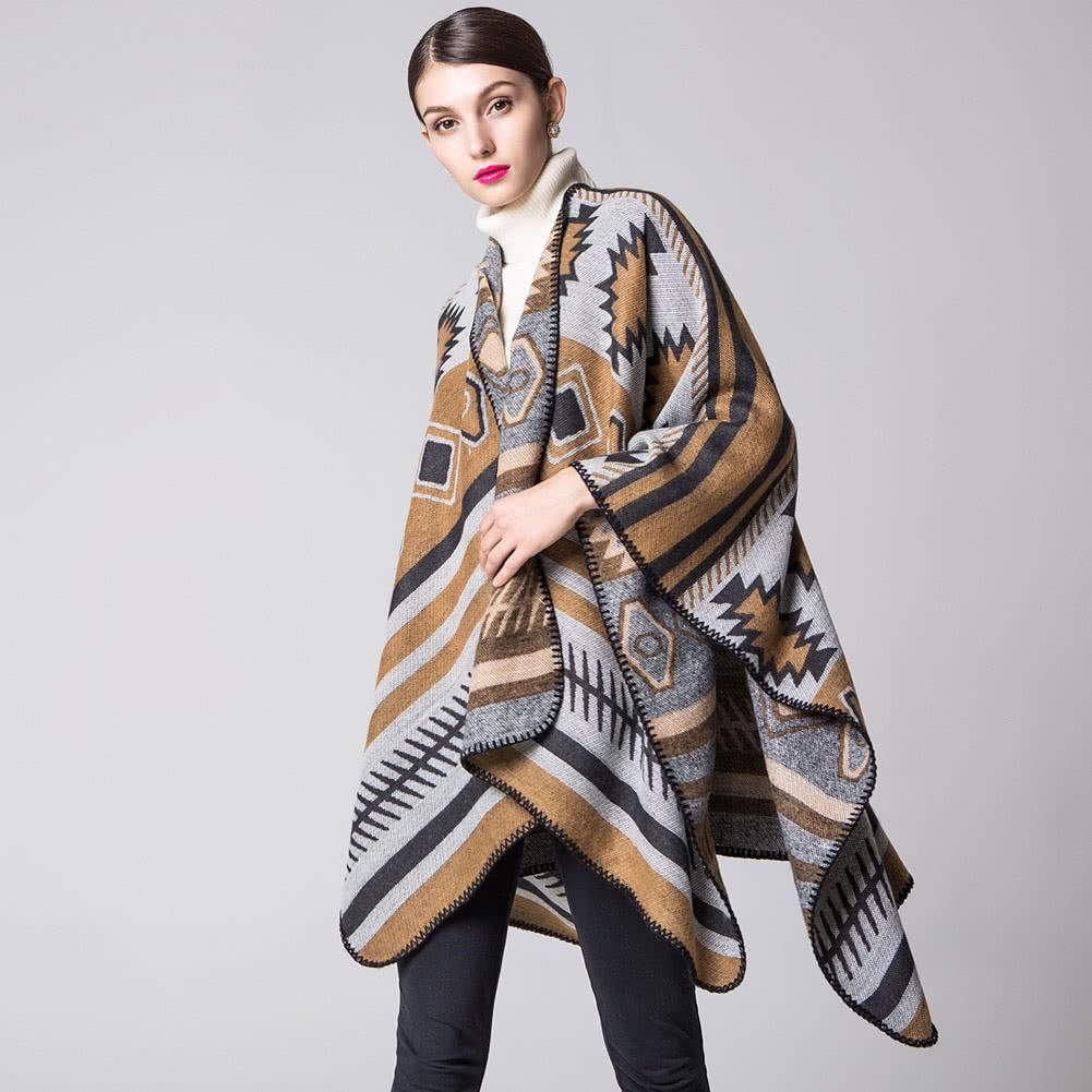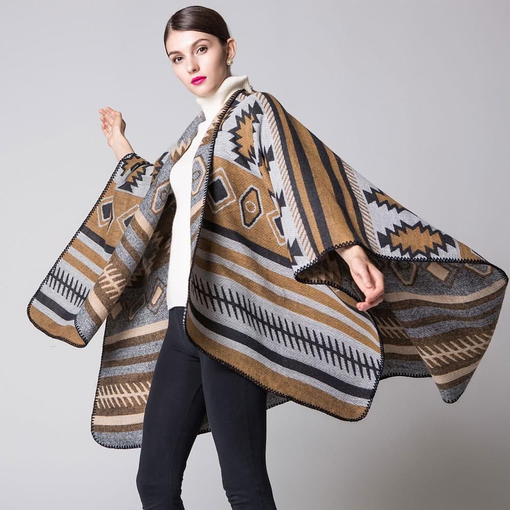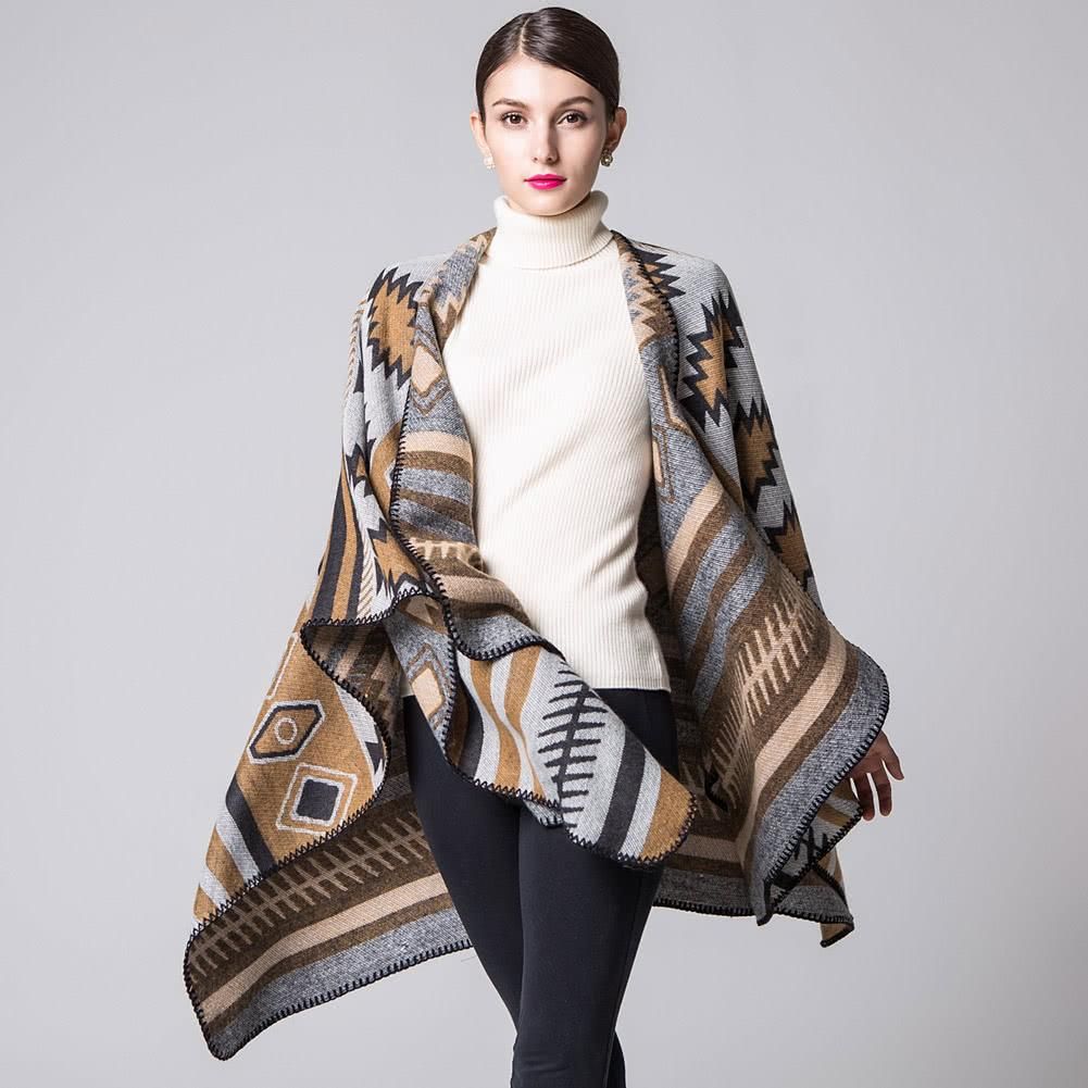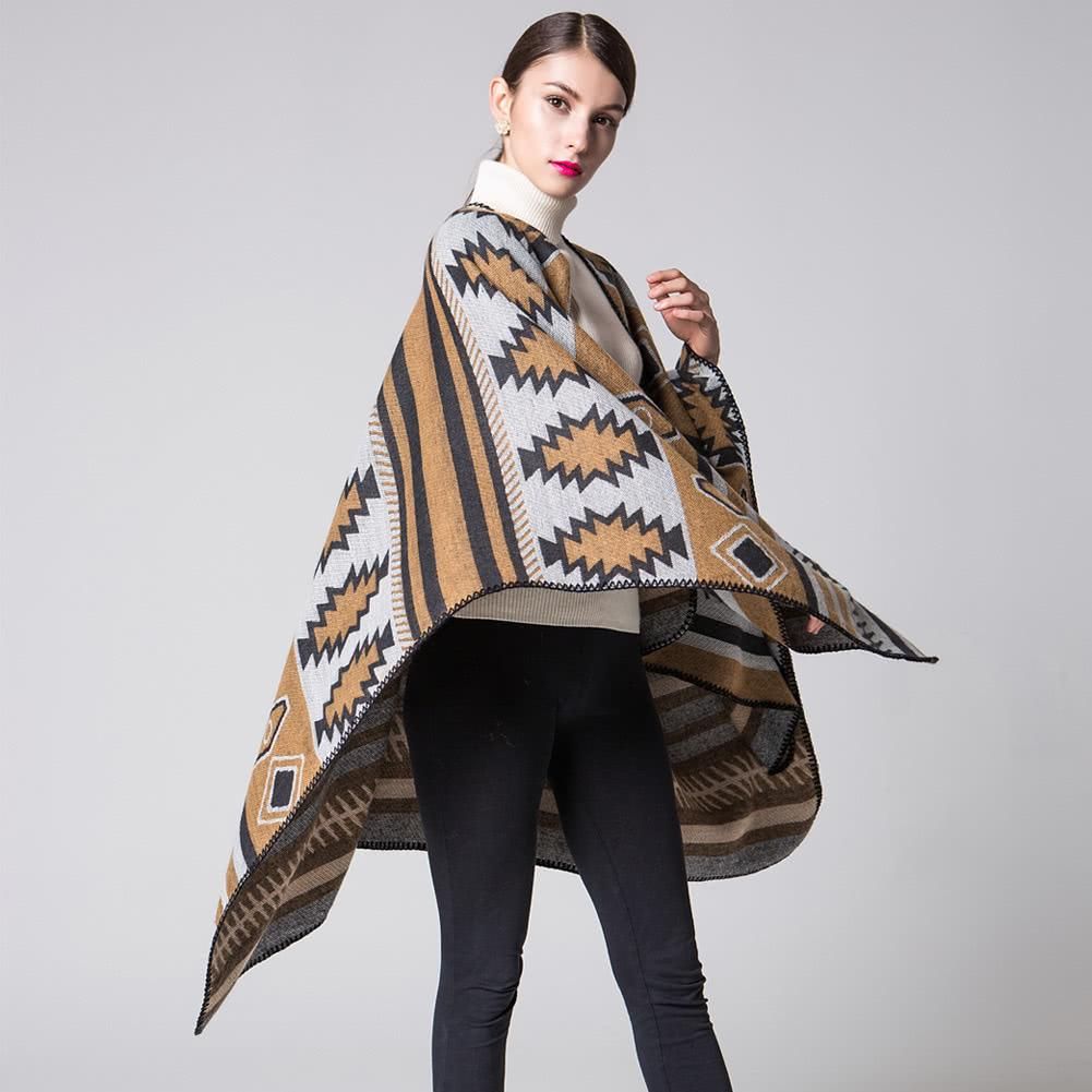 Buy Women Poncho Scarf Cardigan Sweater Geometrical Print Warm in Nigeria