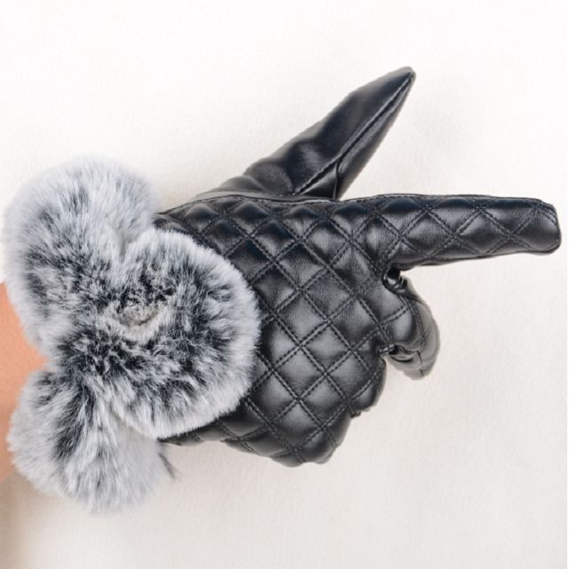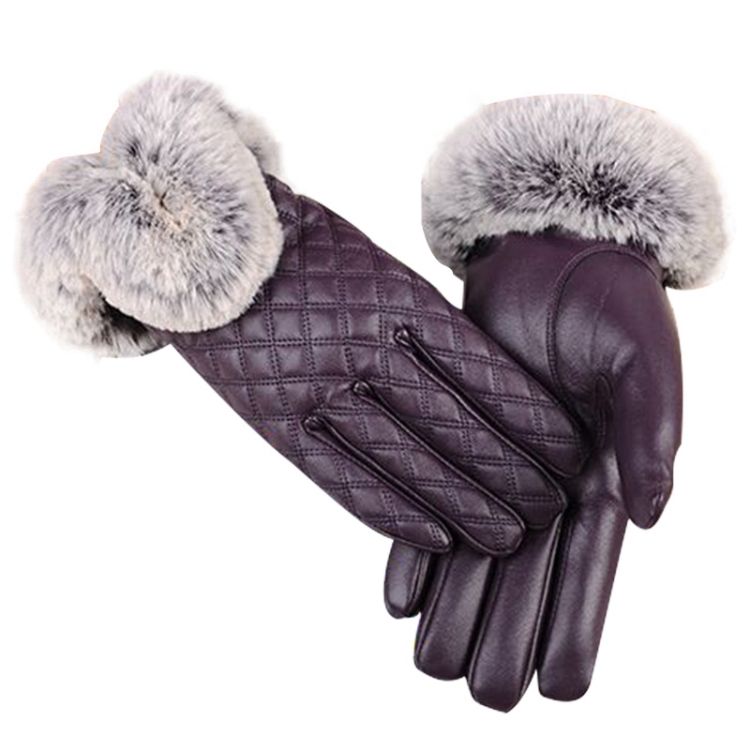 Women PU Leather Gloves Imitated Rabbit Fur Thick Warm Winter and Autumn Female Gloves