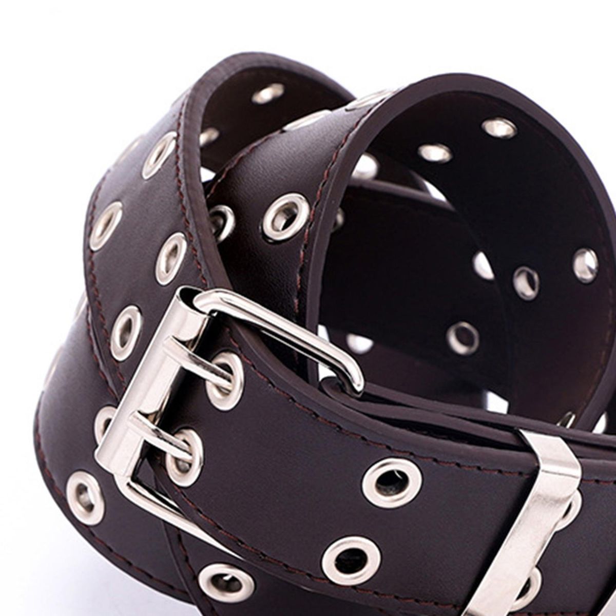 Unique Design: Metal holes double grommet belt, great for rocker costume, jeans, pants, dresses.