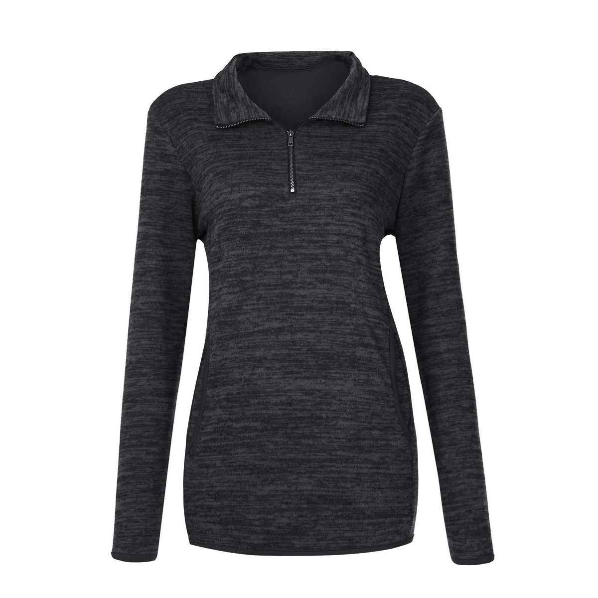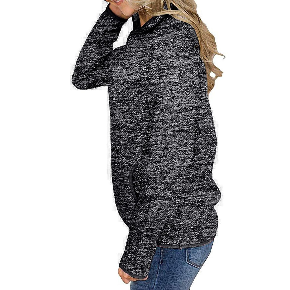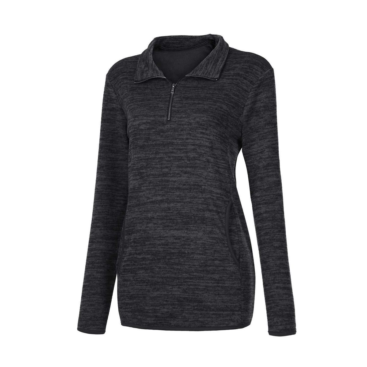 Women Quarter Zipper Stand Collar Long Sleeve Casual Sweatshirt With Pockets