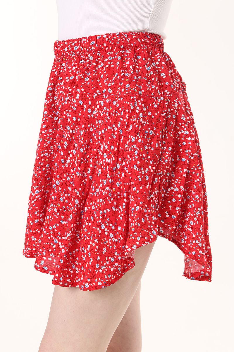Women Red Ditsy Floral Skirt With Inner Short,Red,Women,Spring/Summer,Wash with similar colours. Do not dry with sunlight directly.WARNING! Keep away from fire.