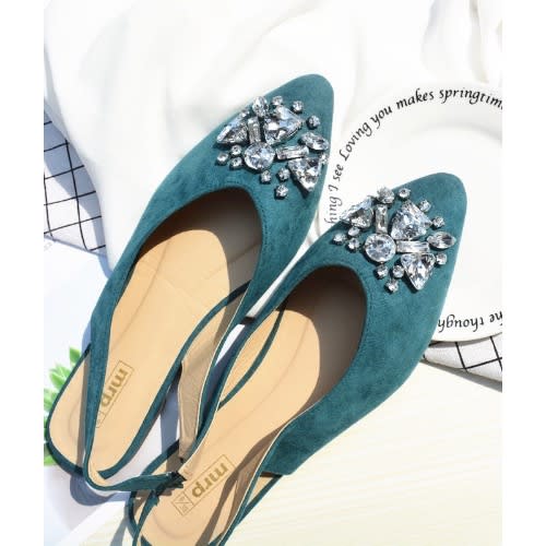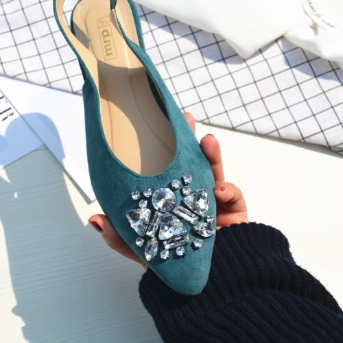 Buy Women Rhinestone Flat Shoe - Teal Green in Nigeria