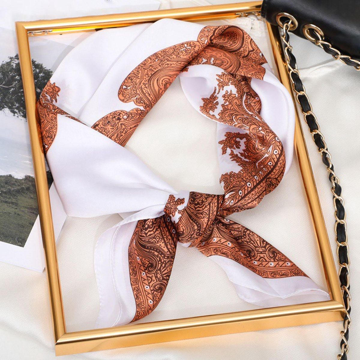 The scarf has the silky texture and exquisite workmanship, which makes it soft and comfortable to touch. Vintage print and contrast color designs make this scarf so fabulous.
