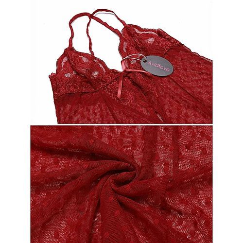 What In the Box1 x Women Sexy Lingerie, 1 x G-StringSpecifications of Women See Through Lace Sexy Adjustable Spaghetti Strap Chemise G-string Lingerie Pajamas-Dark Red SKUSU407AA09C18VNAFAMZ Size (L x W x H cm)18 X 23 X 2 Weight (kg)0.081 ColourDark Red Main material65% Cotton, 35% Polyester