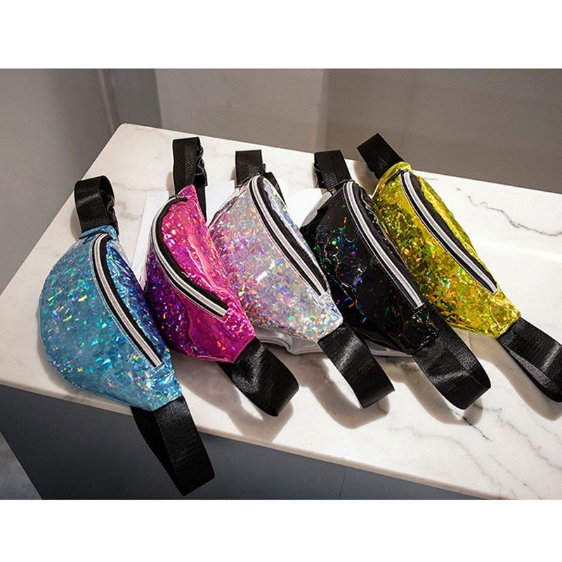 Women Sequins Laser Waist Pack Multi-functional Sports Chest Waist Bag(Purple)