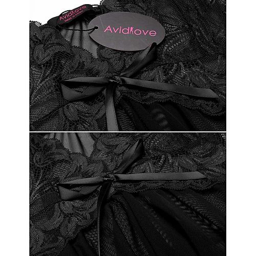 Buy Women Sexy Lingerie Mesh Babydoll Floral Lace Patchwork Nightwear With G-string-Black in Nigeria