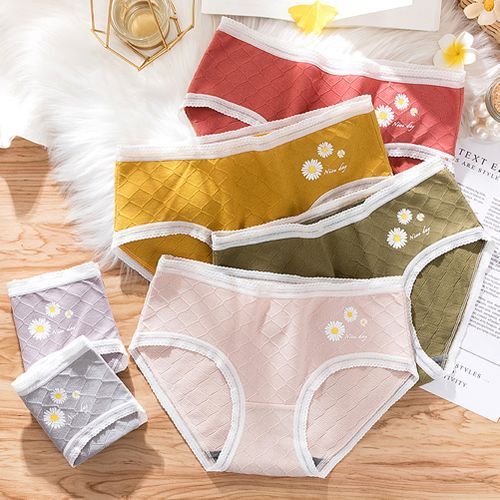The briefs is solid colored with marguerite.