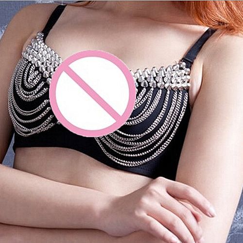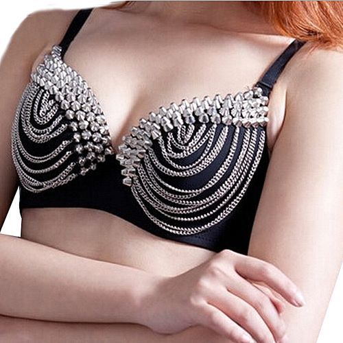 Rock Gaga Goth Punk Rhinestones Sequins Chains Deco Push-up Bra Clubwear Stripper聽