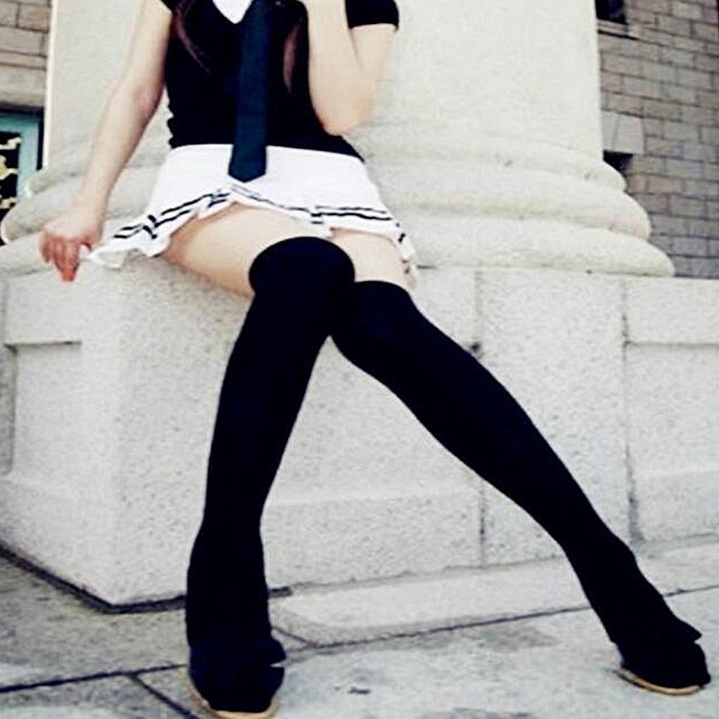 Buy Women Sexy Thigh High Socks Knit Elastic Stocking School Boots Black in Nigeria