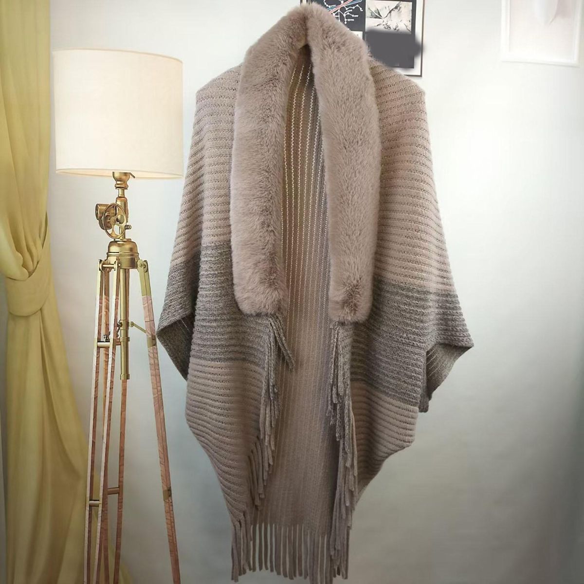 Our versatile and stylish shawl, the perfect accessory for any occasion. made with soft and comfortable imitation cashmere, this shawl is not only beautiful but also practical. its solid color and bright design, along with the faux fur collar and tassel decoration, make it a multi-functional and fashionable choice.