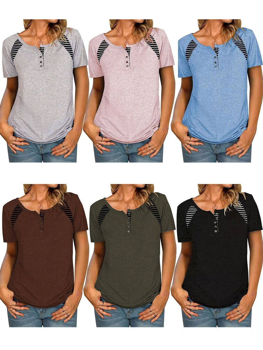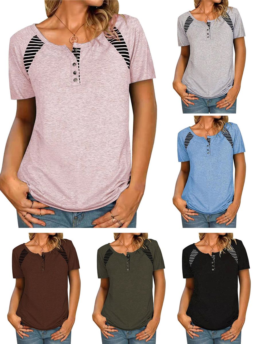 Casual short-sleeved T-shirt in polyester and cotton blend material.