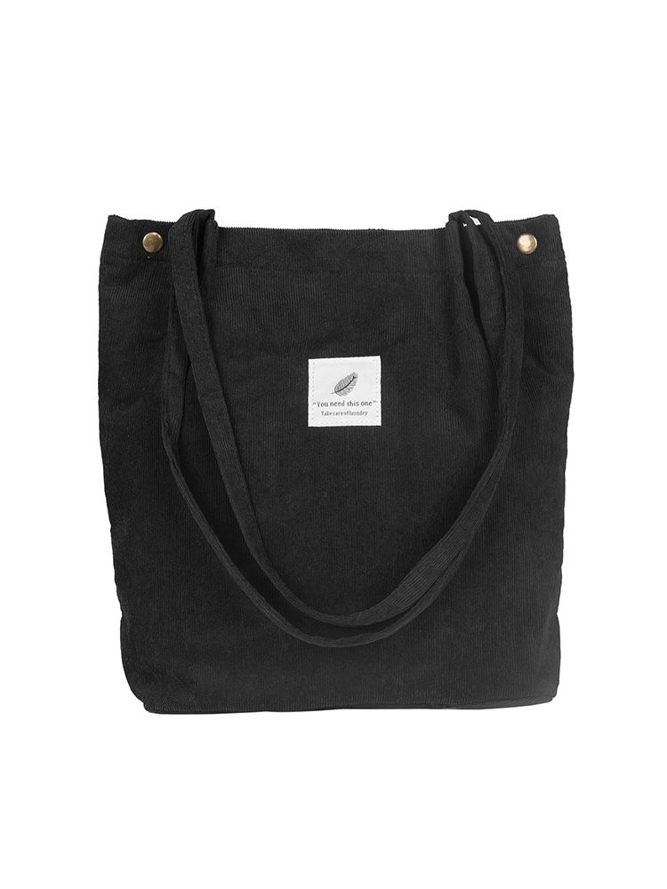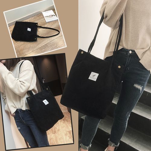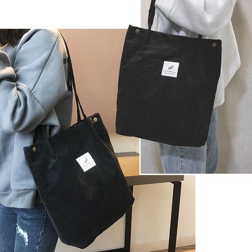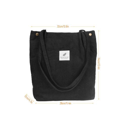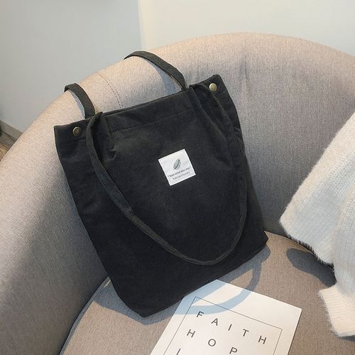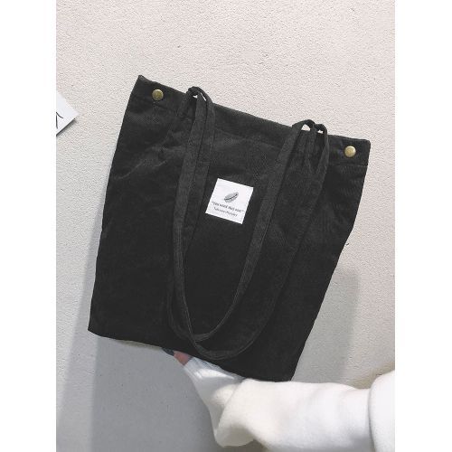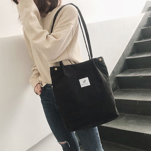 Vintage corduroy tote to complete your chic ensemble. It has retro solid corduroy finish, magnetic stud and press studs closure to top, and interior slot pocket. It is soft, foldable, light and reusable. Have it to pair your corduroy skirt, coat or jeans for school, shopping, or holiday.