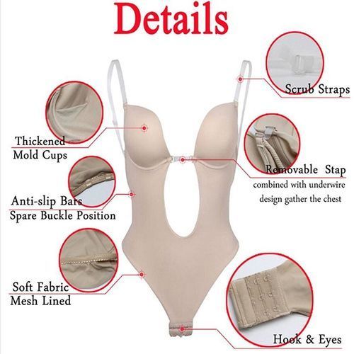 Women Slimming Body Shapers Slips Shapewear Deep U Plunge Bra Seamless Push Up Bra Thong Underwear Backless Party Dress Bodysuit