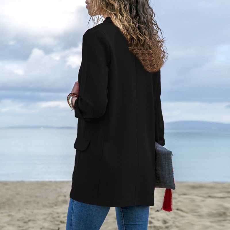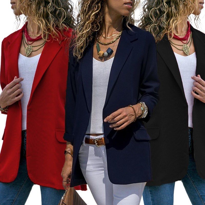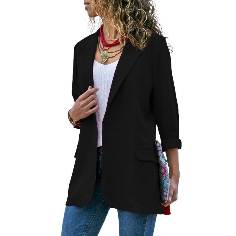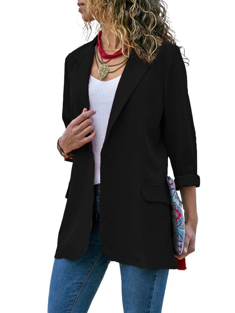 Try this thin blazer for weekend or workdays. It has solid finish without lining, notched lapel collar, open front and long sleeves. Take it to your wardrobe.