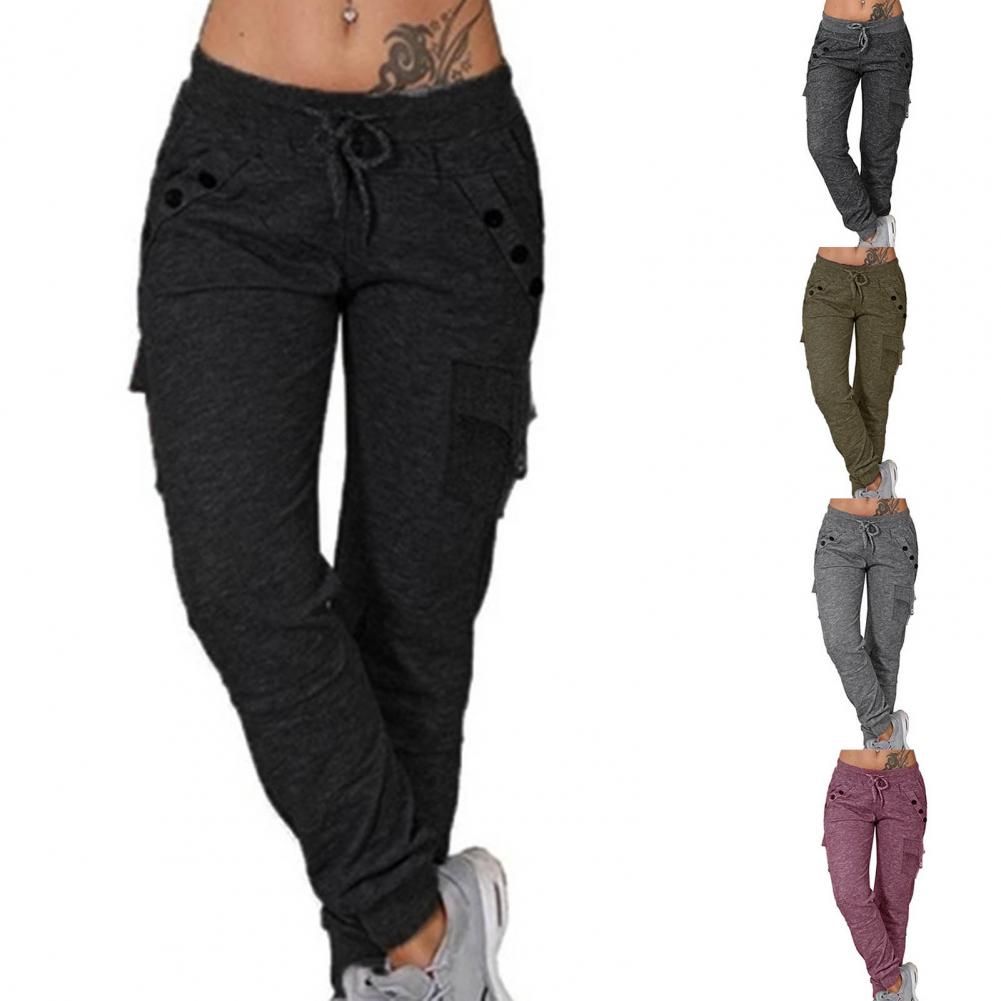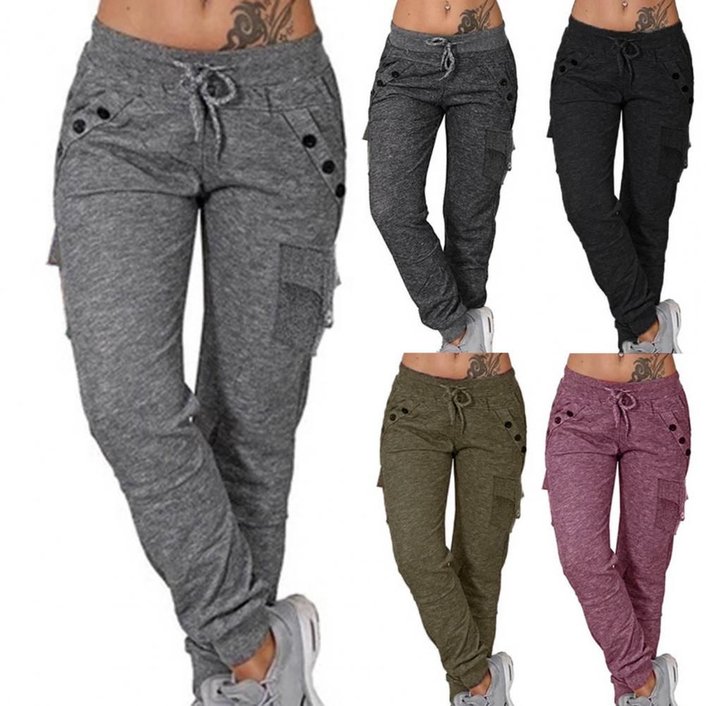 1X Women Solid Cargo Pants Multicolor Stretch Casual Lacing Drawstring High Waist Bottoms Trousers Fitness Tracksuit Dropshipping