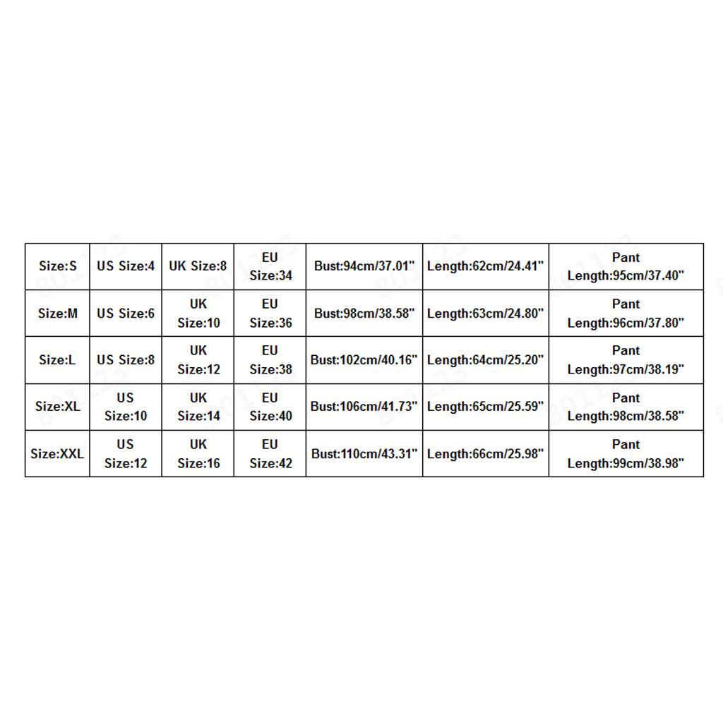 Size: XXL US Size: 12 UK Size: 16 EU Size: 42 Bust: 110cm/43.31'' Length: 66cm/25.98'' Pant Length: 99cm/38.98''