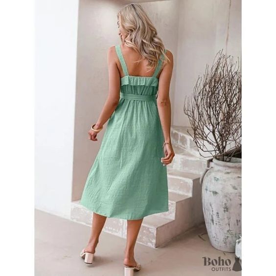 Buy Women Spaghetti Strap Casual Ruffled High Waist Lace-up Party Dress - Mint Green in Nigeria