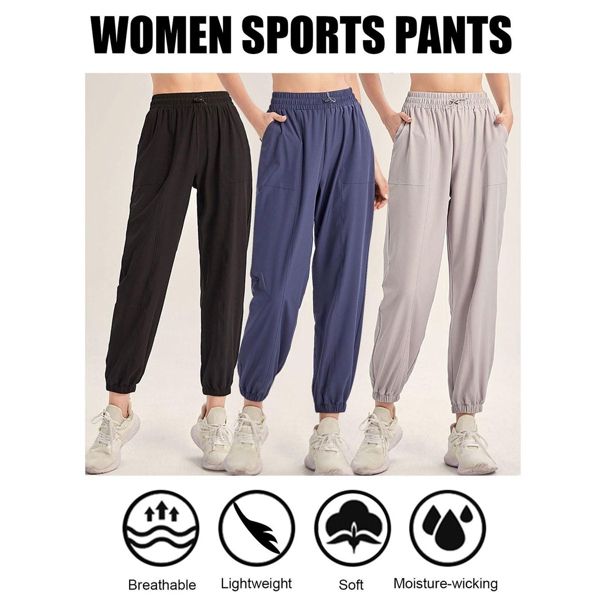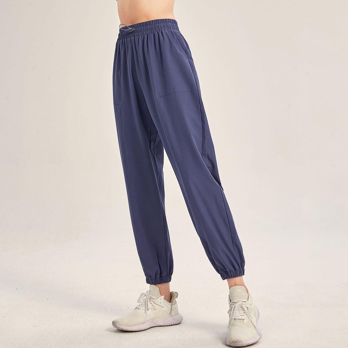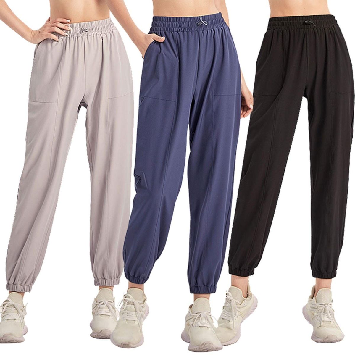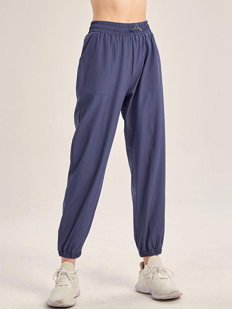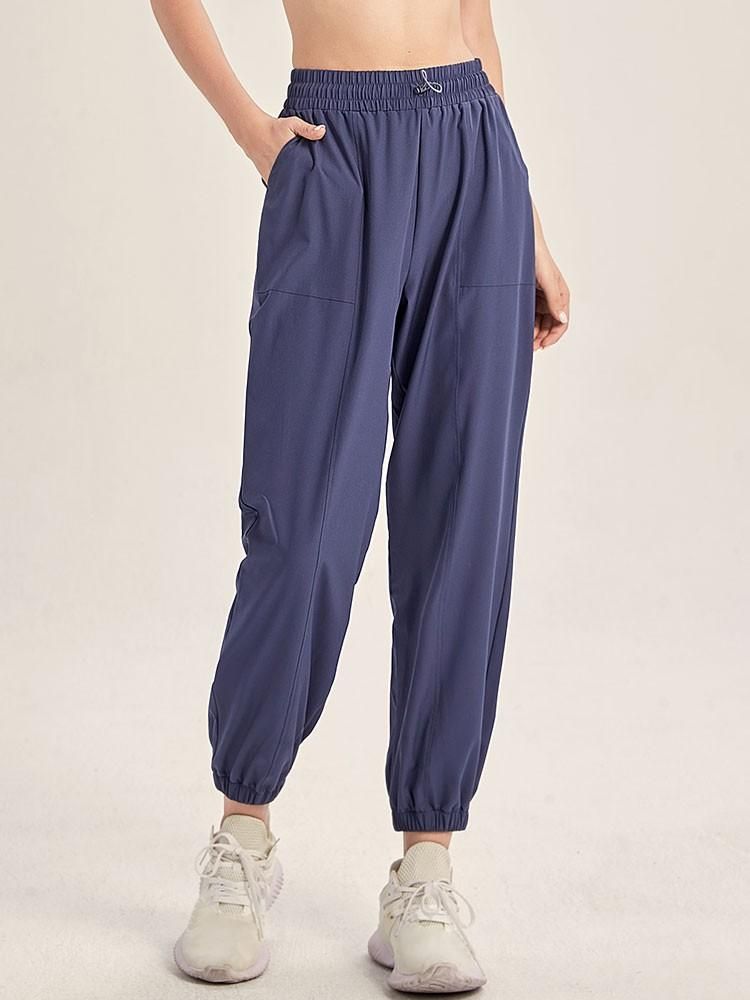 Buy Women Sports Pants Solid Color Elastic High Waist Drawstring Pocket Loose Breathable Running Yoga Gym Trousers in Nigeria