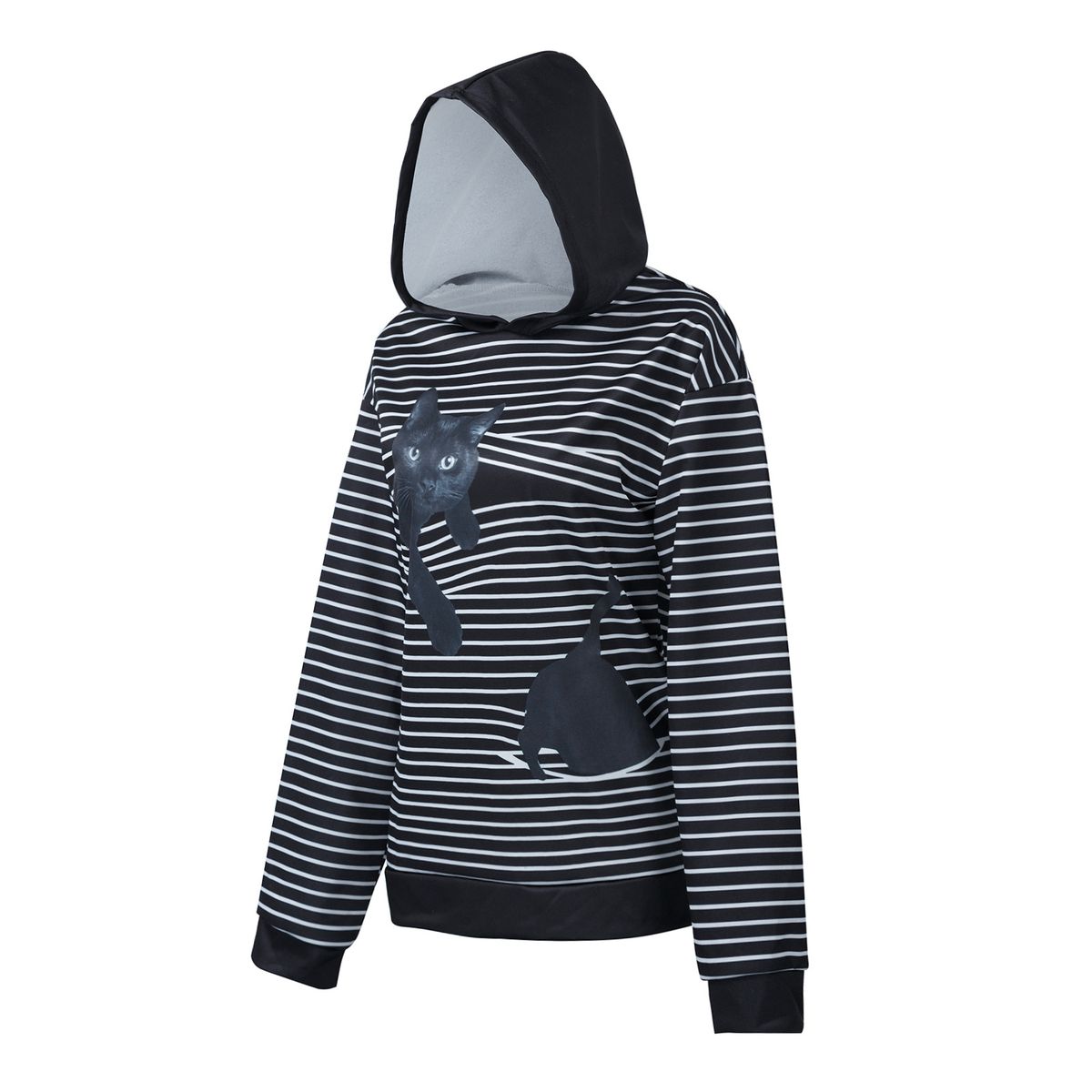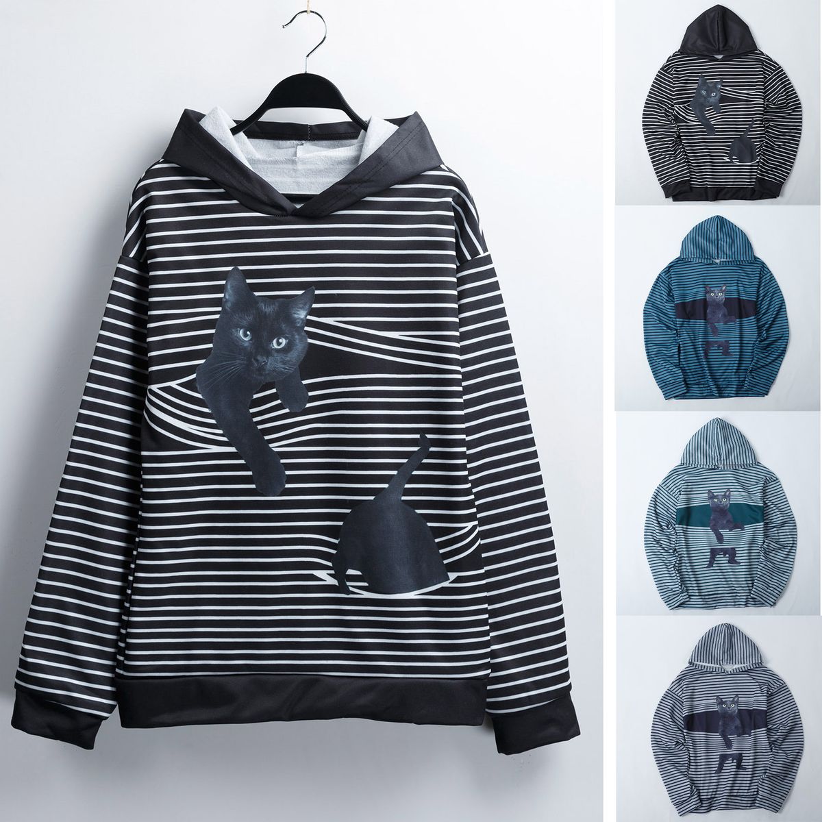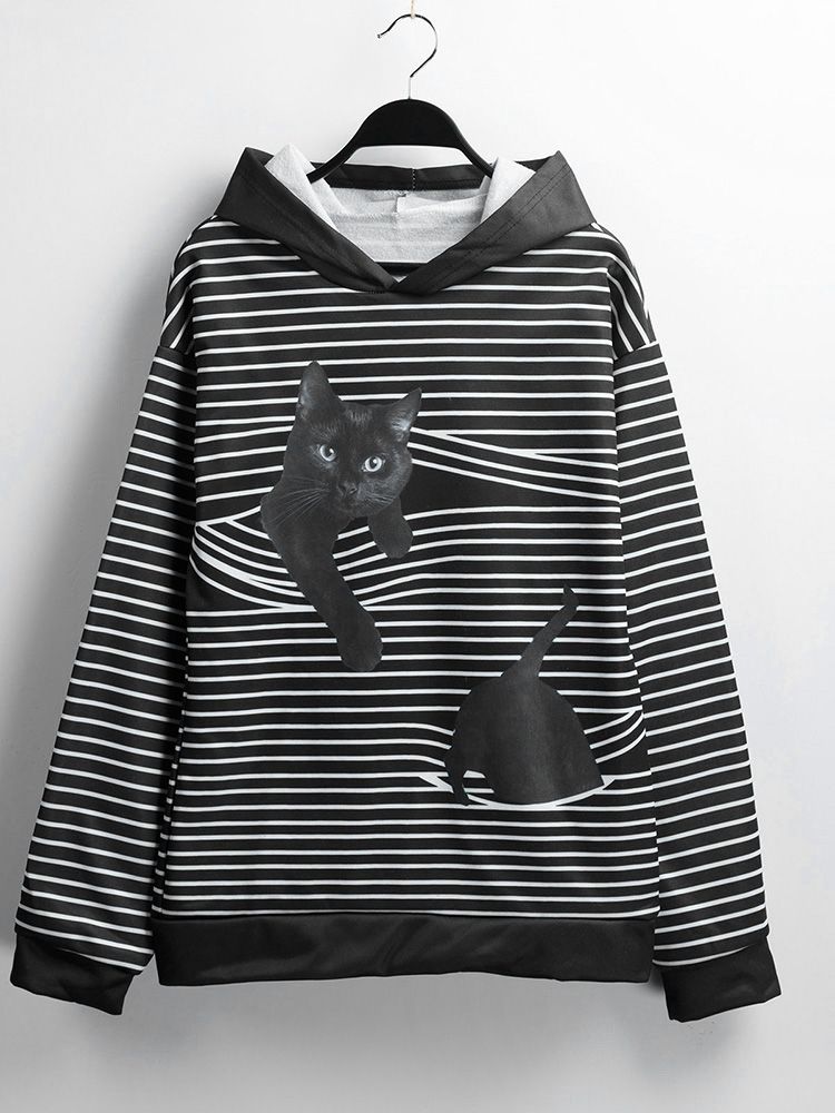 This hoodie features stripes and cats pattern. It\';s chic and cute for daily wear, street, lounging, and other occasions. Pair it with your jeans to complete the cool ensemble.