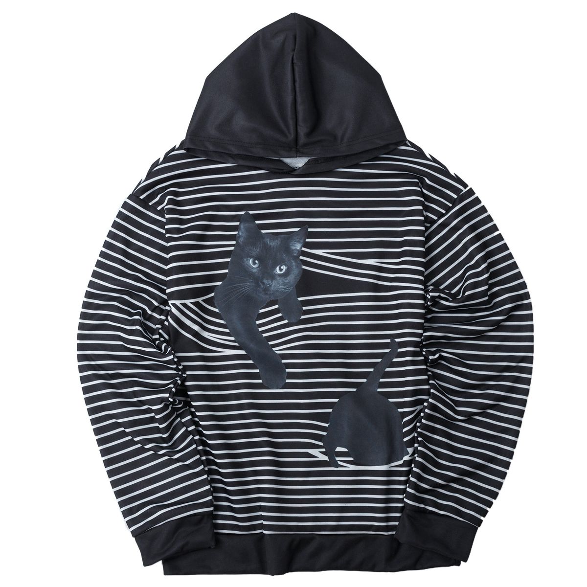 This hoodie features stripes and cats pattern. It\';s chic and cute for daily wear, street, lounging, and other occasions. Pair it with your jeans to complete the cool ensemble.