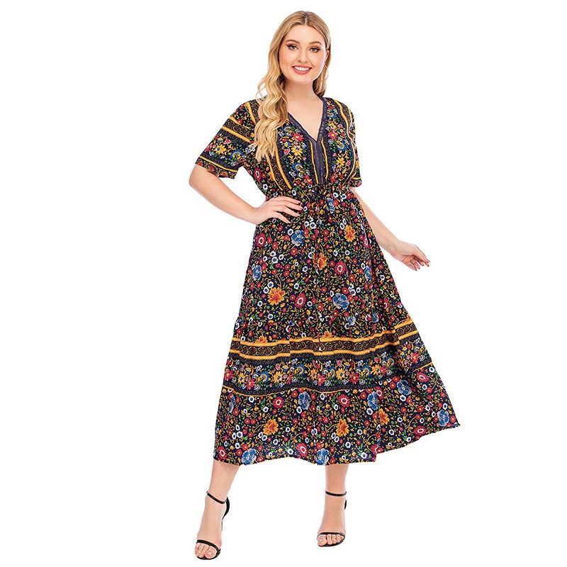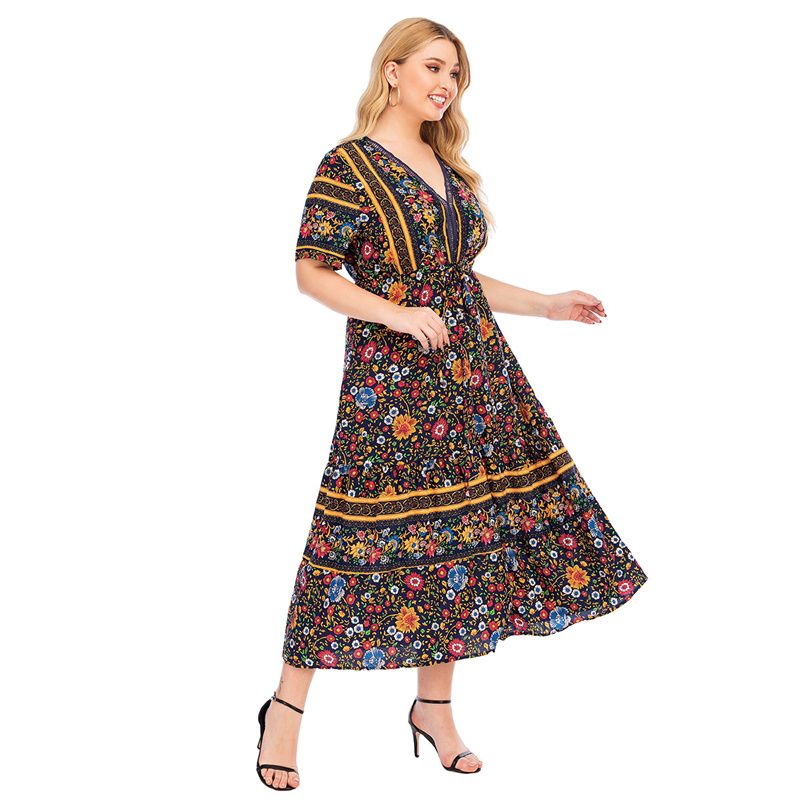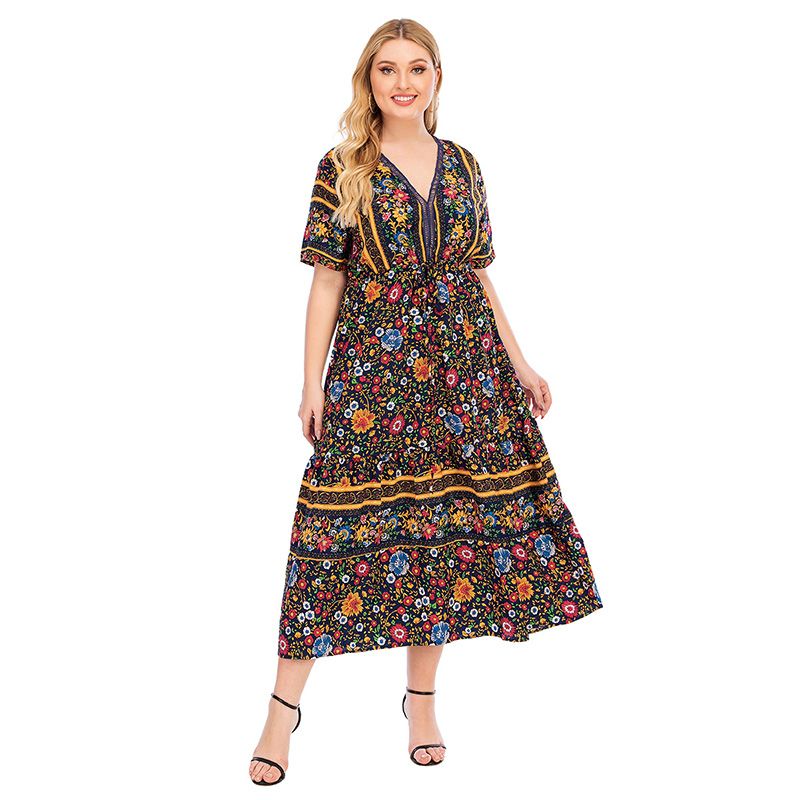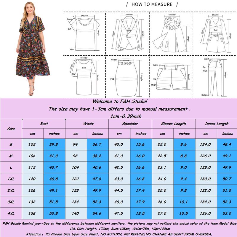 Size: S,M,L,XL, 2XL, 3XL,4XL. Model Size FYR: Height: 171cm, Bust:106cm, Waist:76cm, Hips:120cm, Model wear size XL.❤This is v neck short sleeve dress !!❤Style:V Neck Short Sleeve Slim Fit Plus Size Dress.Please note that slight color difference should be acceptable due to the light and screen.What You Get:1 x Dress. FQA:1. Q: Why the item haven't shipped out?A: After you place the order, We will ship the item to the rehmie warehouse within 48 hours as soon as possible, and then rehmie warehouse will send the item to you. If you find the logistics status is"to be shipped", it may be because the rehmie warehouse has not yet been shipped. Please don't worry.2. Q: How can I choose the size?A:Please refer to the size chart and select the appropriate size according to your actual size.If you are not sure what size to choose, please call me. 3. Pls take note that all the clothes can not be returned or exchanged.4. All dimensions are measured by hand, there will be 2-3cm reasonable deviations. (1cm=0.39 inches). Pictures are only samples for reference. Due to the differences in monitor settings, the colors shown in the photograph may not correspond 100% to those in the items themselves. 5.For transportation needs, the cloth that you've received will have a fold phenomenon. Please don't worry, this fold situation will disappear after the first time you clear or ironing.