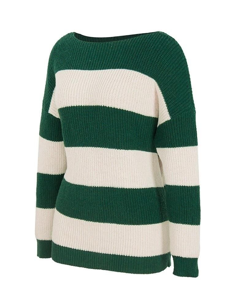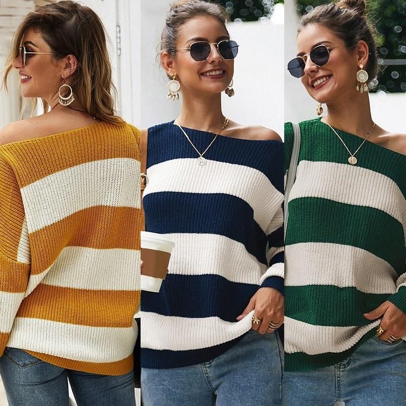 Buy Women Sweater Contrst Stripes One Shoulder Dropped Shoulder Slash Neckline Long Sleeve Casual Street Wear in Nigeria
