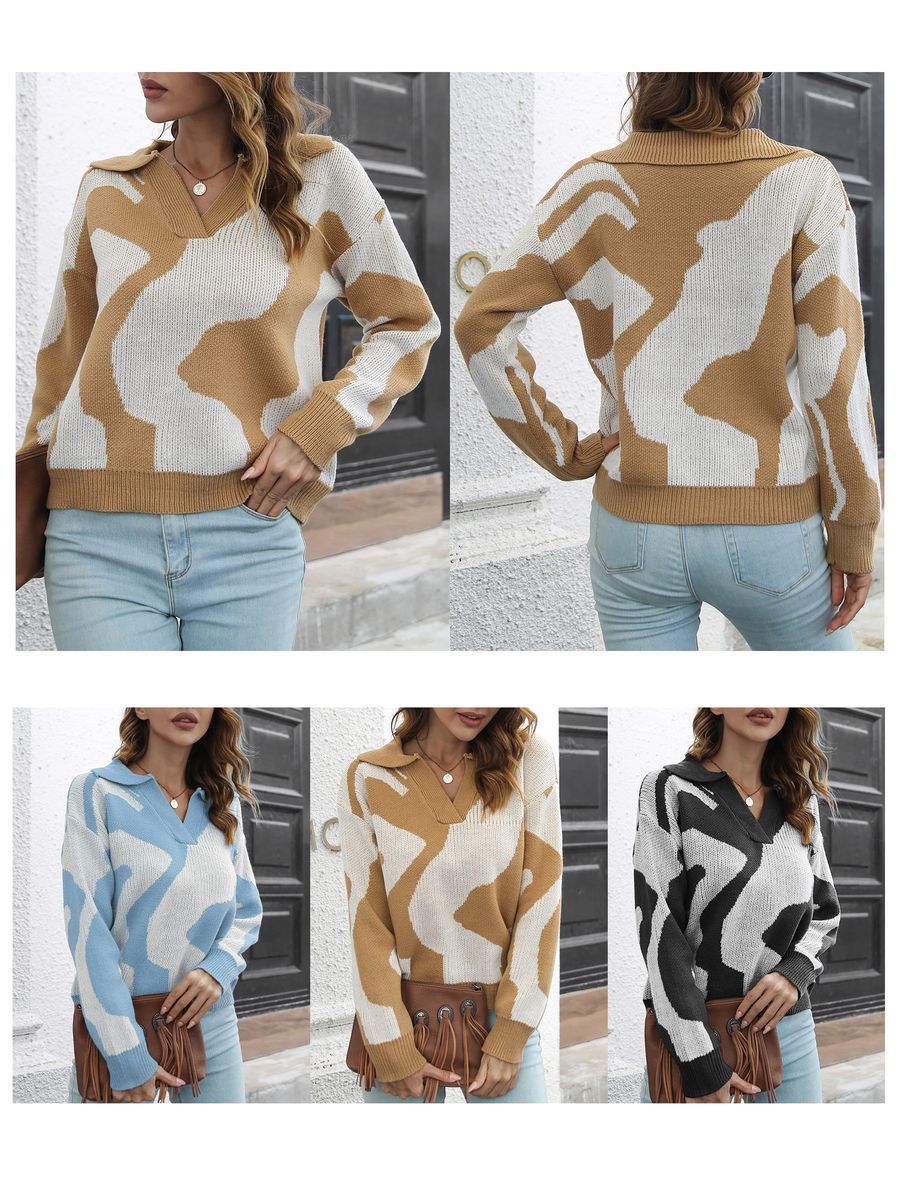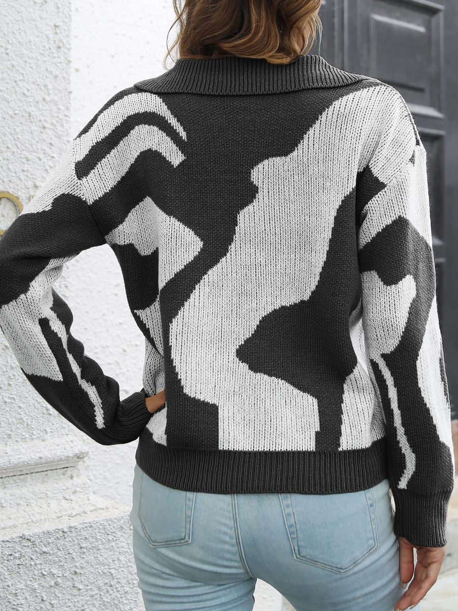 V-neck, drop shoulder and long sleeves.