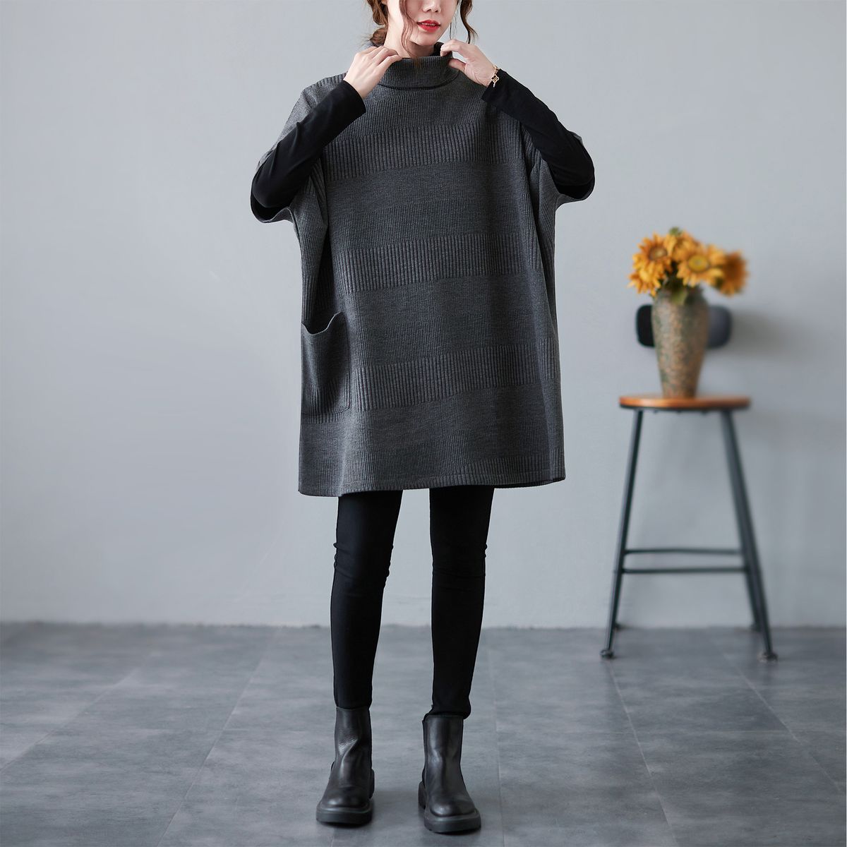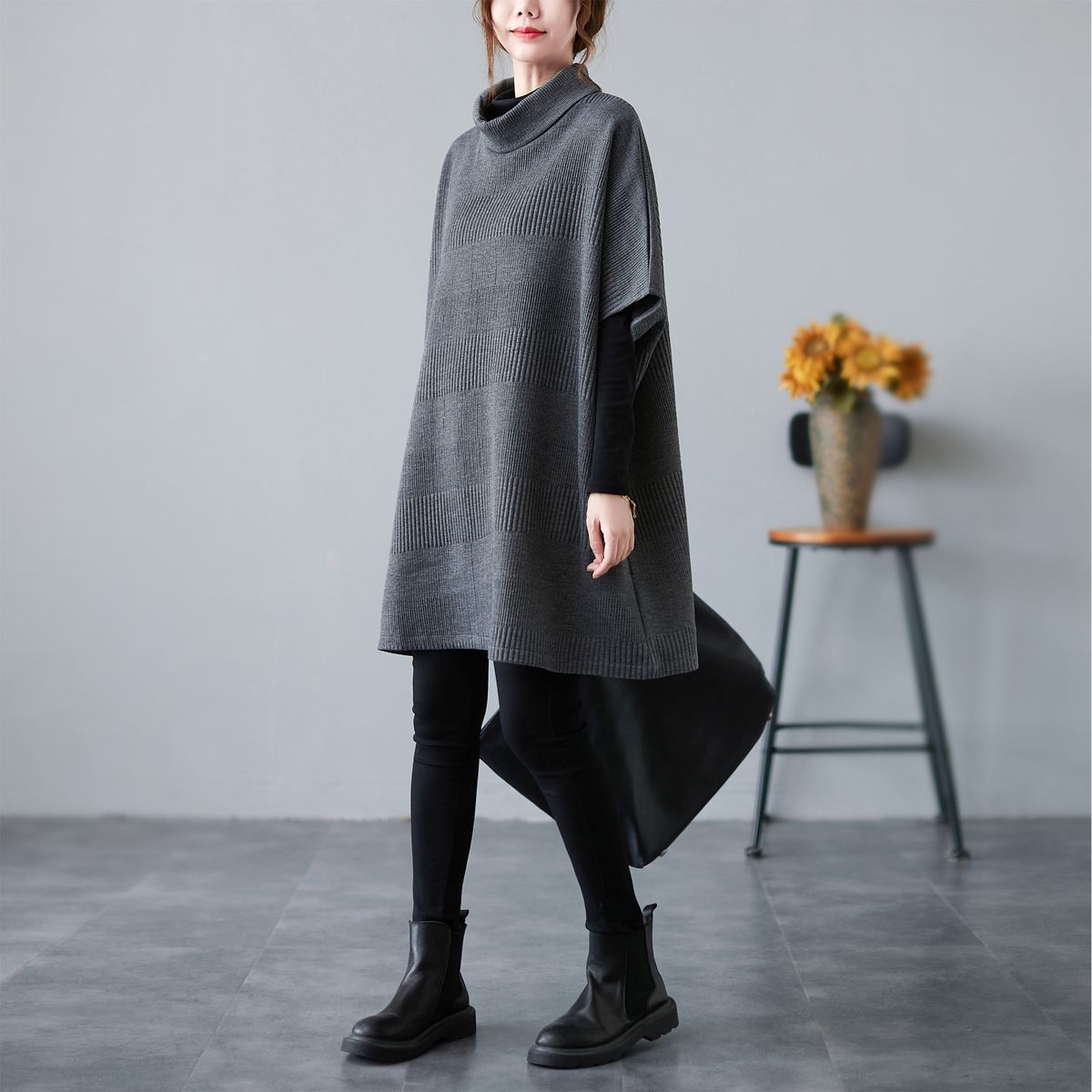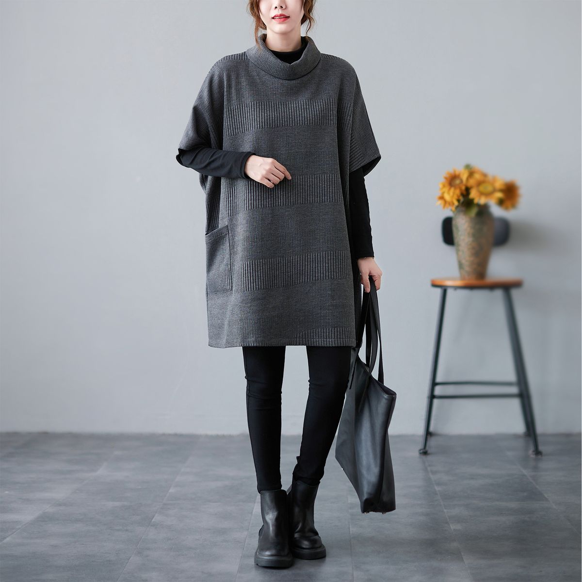 Loose silhouette with turtleneck, drop shoulder and half sleeves, makes you look slim.