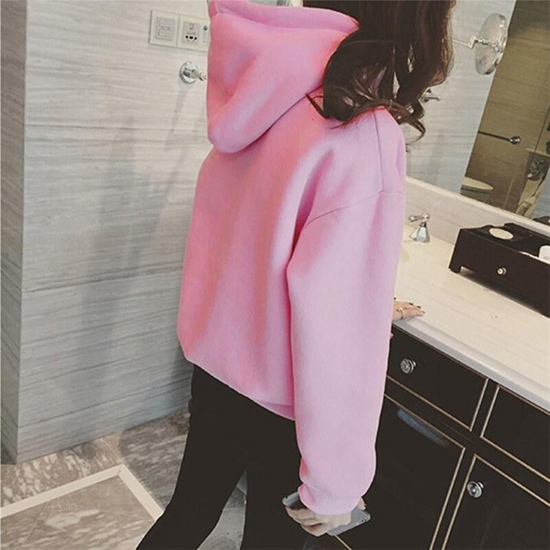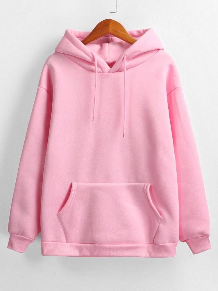 Buy Women Sweatshirt Solid Color Hooded Neckline Dropped Shoulder Pocket Ribbed Long Sleeve Casual Loose Pullover in Nigeria