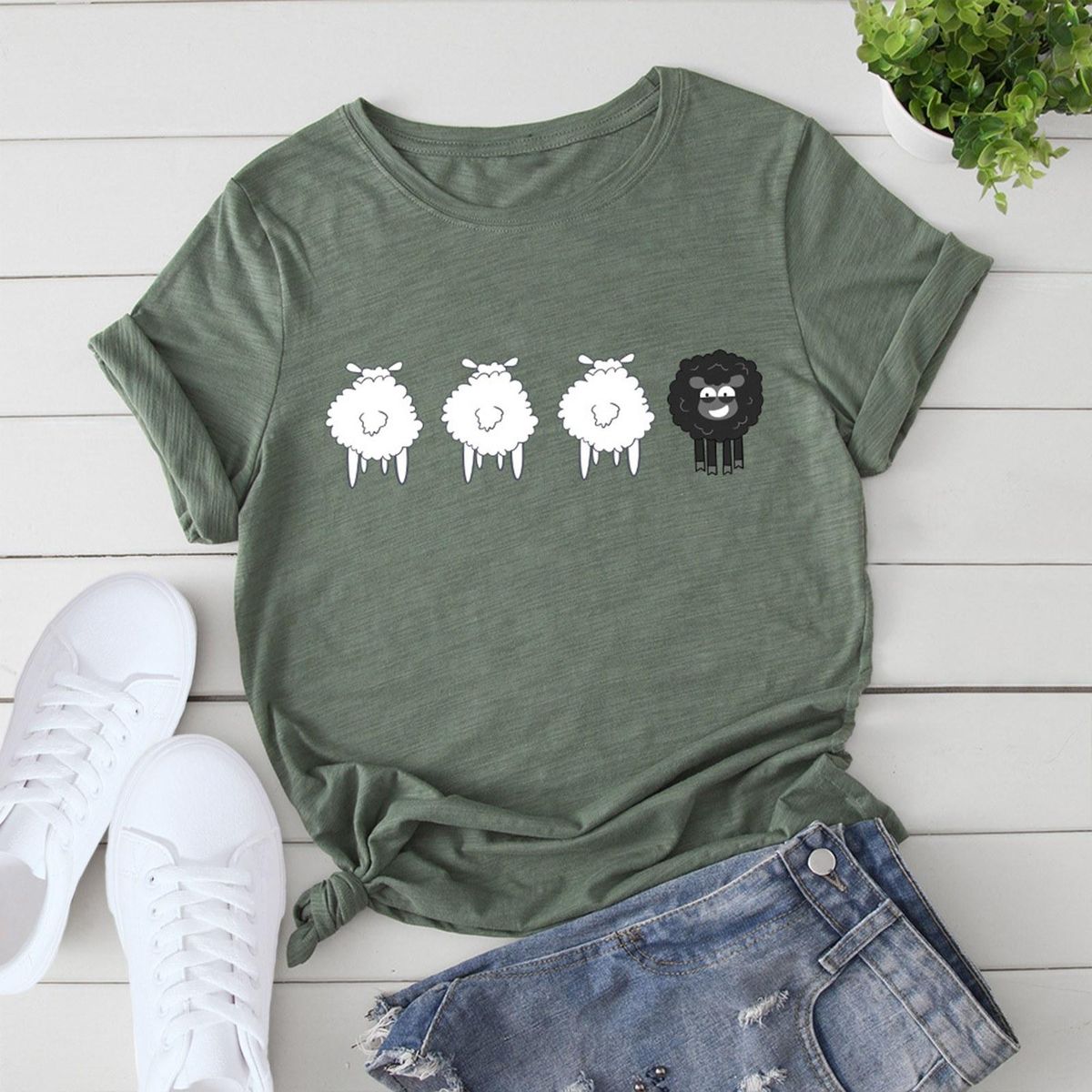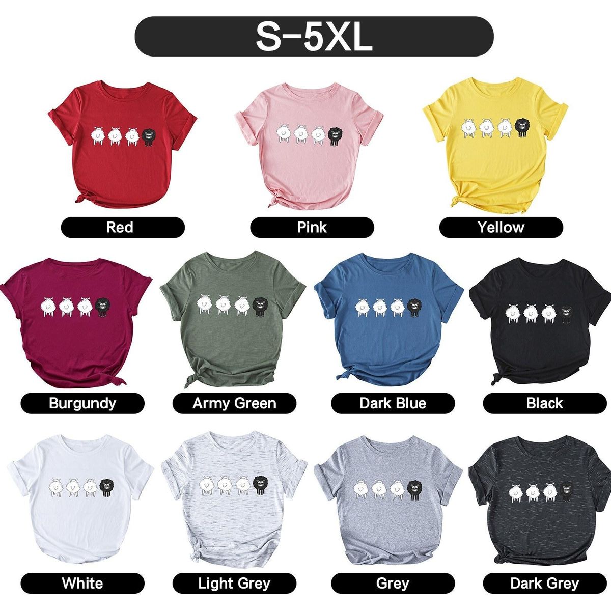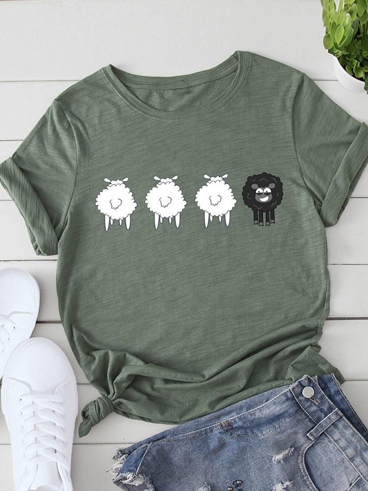 Buy Women T-shirt Cute Sheep Print Short Sleeve O Neck Plus Size Casual Tops S-5XL in Nigeria