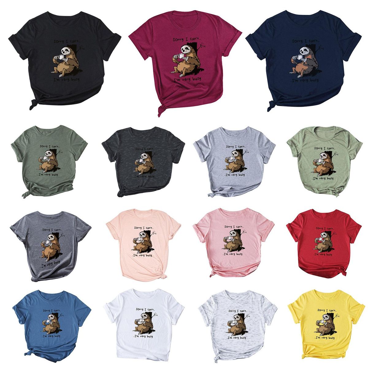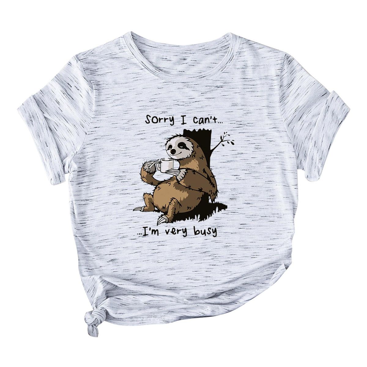 Buy Women T-shirt Cute Sloth Print Short Sleeve O Neck Plus Size Casual Loose Tops S-5XL in Nigeria