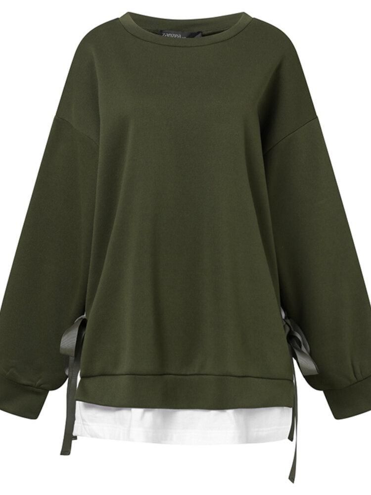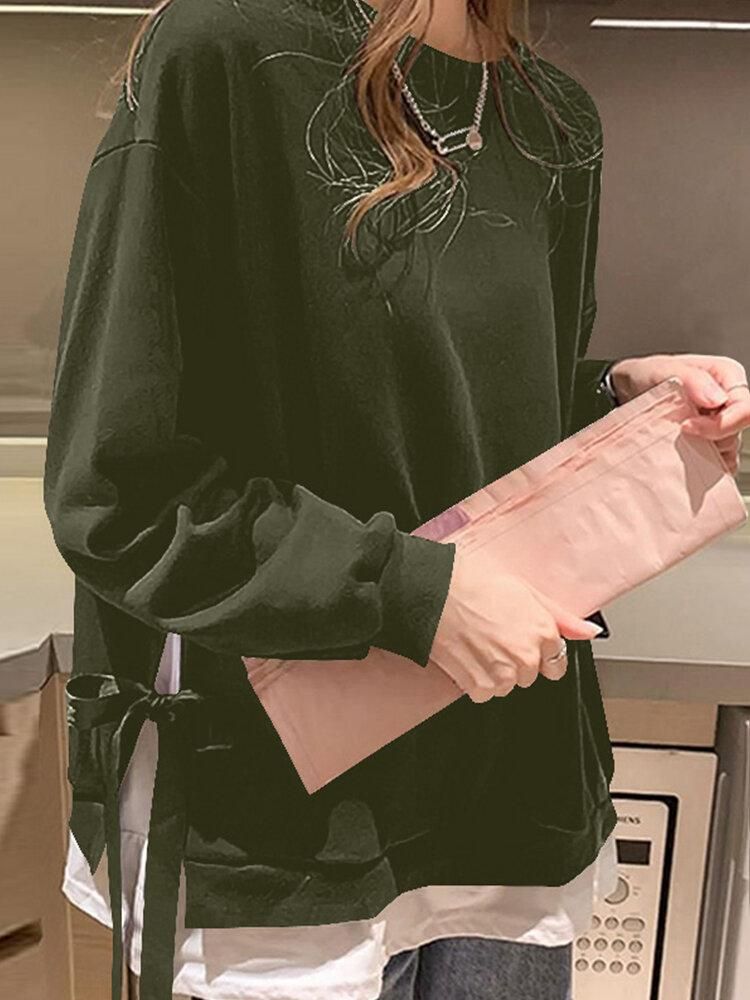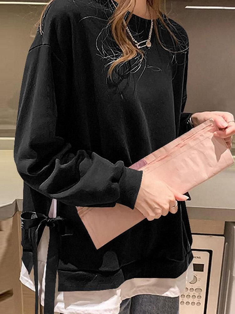 Buy Women Tie-Design Hem Contrast Color Patchwork Faux Two O-Neck Sweatshirt in Nigeria