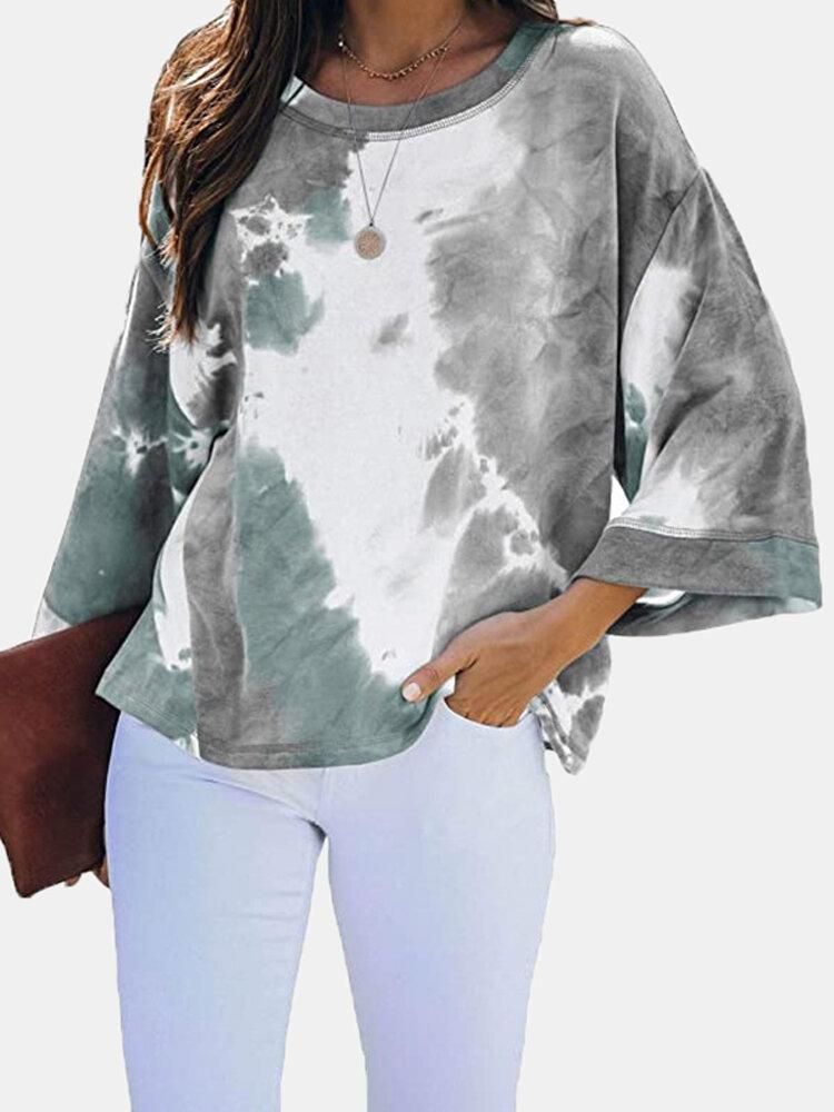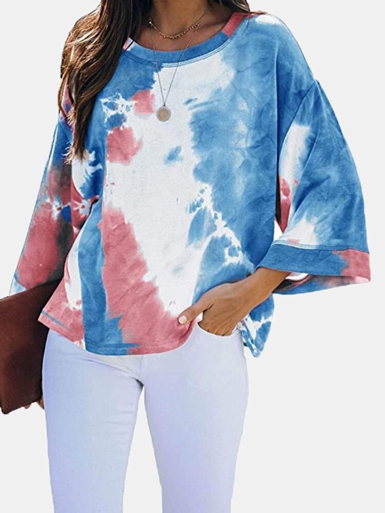 Buy Women Tie Dye Dolman Sleeve O-Neck Plus Size Casual Blouse in Nigeria