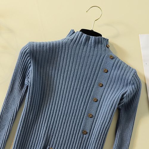 1X Turtleneck Slim Fit Button Decor Pullover Knitwear Autumn Winter Women Turtle Neck Knit Sweater Casual Long Sleeve Jumper Tops