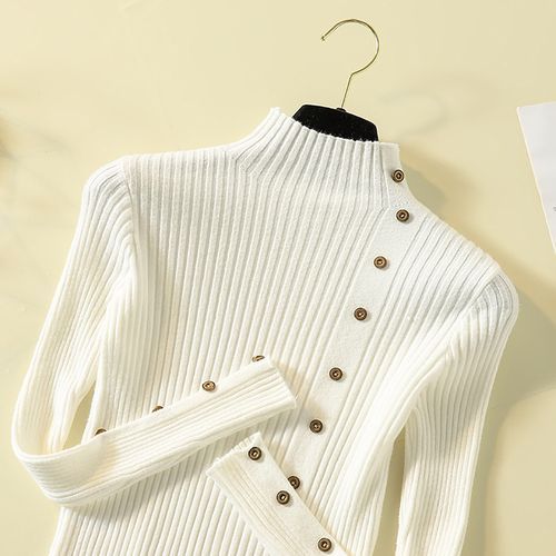 1X Turtleneck Slim Fit Button Decor Pullover Knitwear Autumn Winter Women Turtle Neck Knit Sweater Casual Long Sleeve Jumper Tops