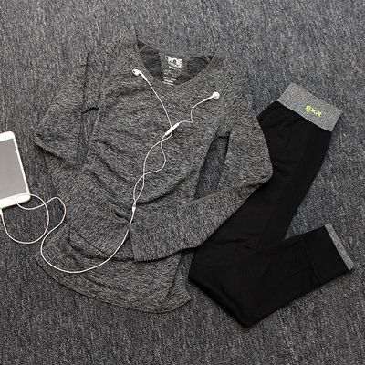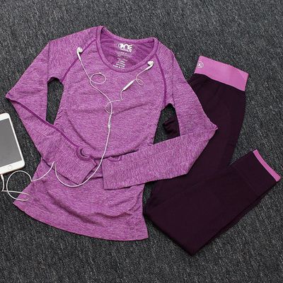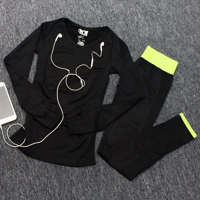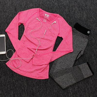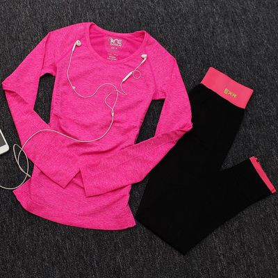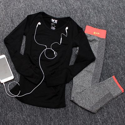 1 * Women Two Pieces Set Yoga Long Sleeve T-Shirt And Gym 1_S