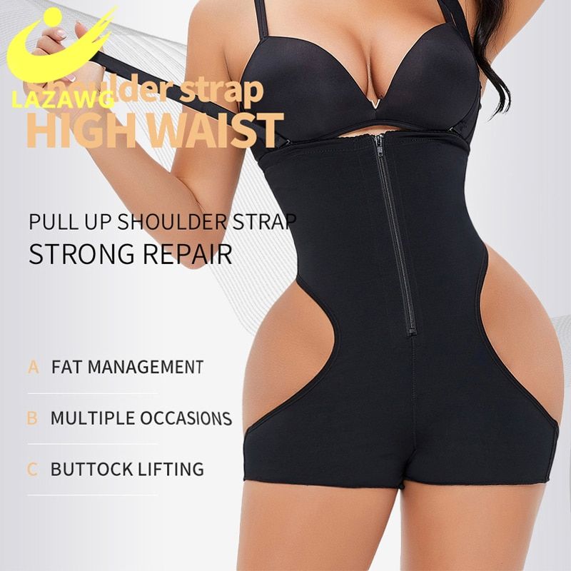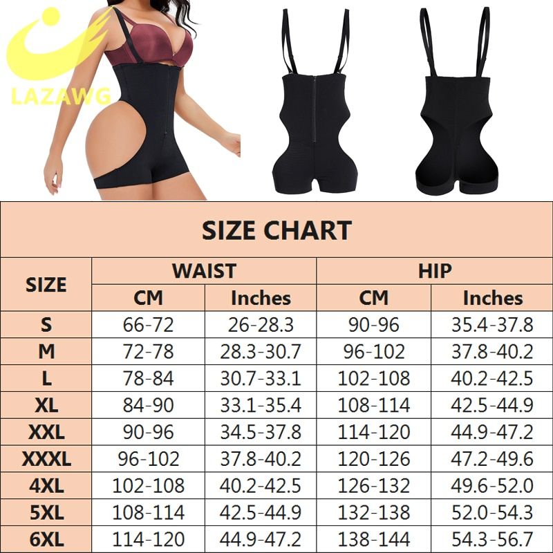 Features: 90% polyester + 10% spandex. super elastic. High waist, zipper easy to put on and take off, high waist one-piece, boxer briefs, hip design, detachable adjustable shoulder strap, full belly fat control and seamle. Boyshorts design, thigh slimmer & seamle under clothes. Three rows of hook for waist closure, more firm control.