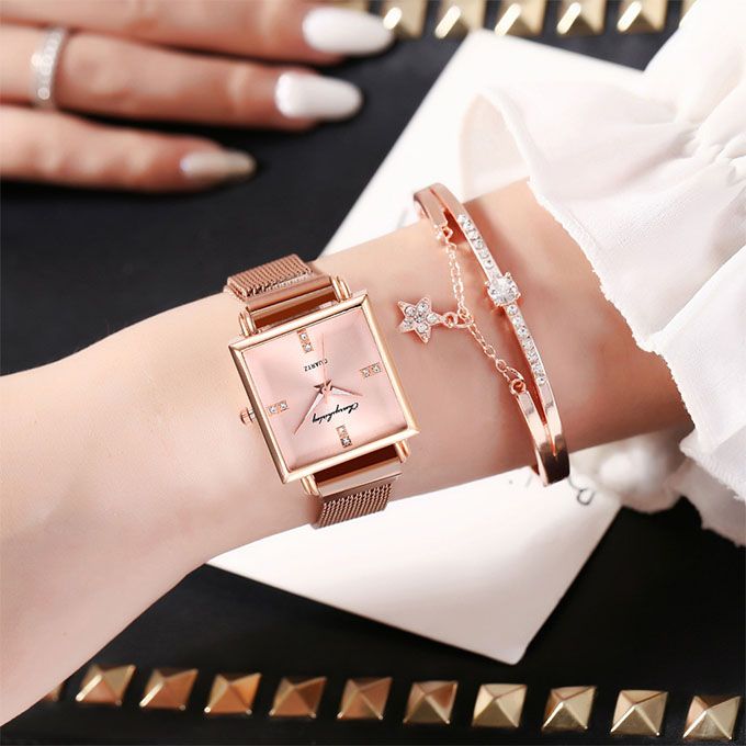 Classic Fashionable wrist watch that will compliment your dressing to give you the confidence you deserve as a classy and uptown person. This Wristwatch has been well-crafted to fit your personal style, it comes with astounding designs that make your wrist stand out. It also comes with a Hold Handchain/Bracelet that complements the wristwatch and is classy to boot.The face changes color and Glitters as you move your hand. Nothing beats the timeless appeal of our watches, offering a distinct look that gets you attention. Jazz up your outfits and add sophistication to your look with this exquisite watch that has been specially designed for you.The Gold Bracelet gives a matching fit to the Wristwatch and gives a classy look. It is unique and Chic and totally gorgeous.. There might be a slight difference in the charms on the Gold Bracelet..