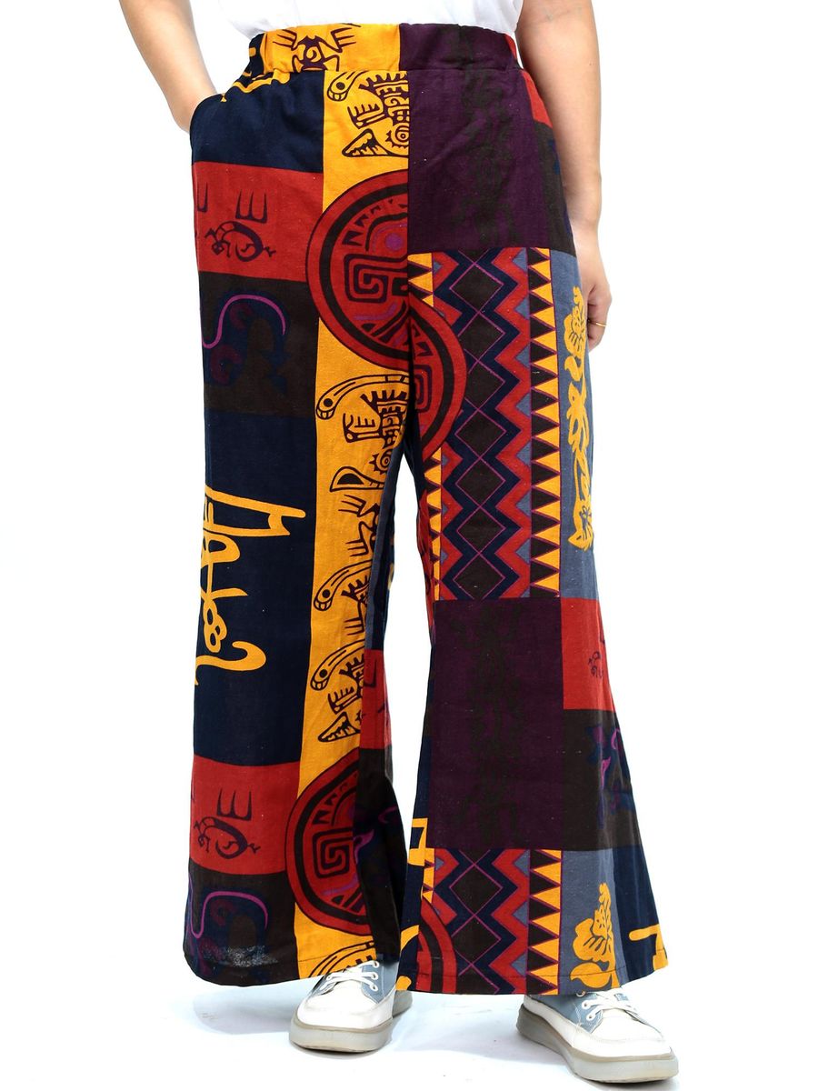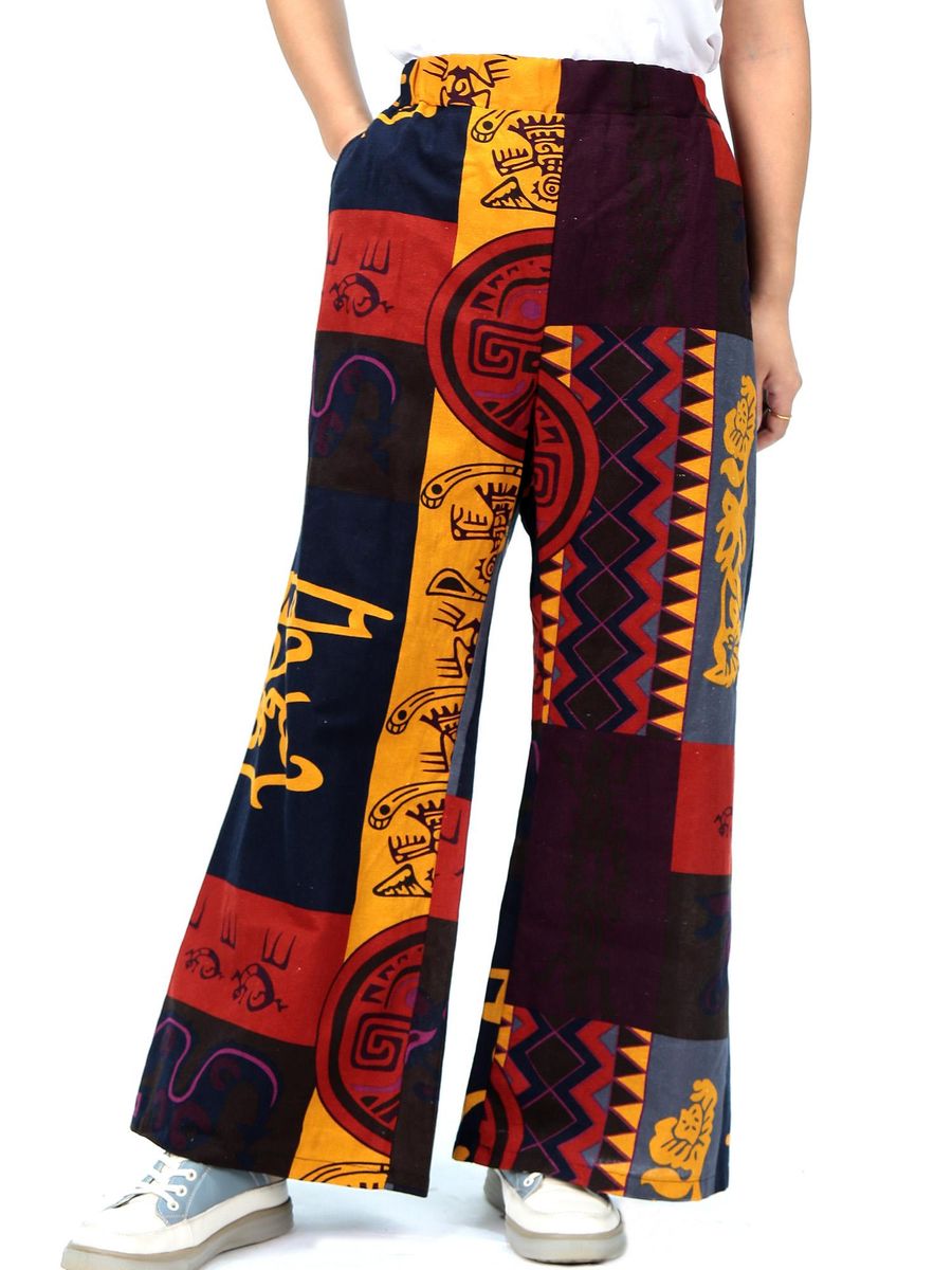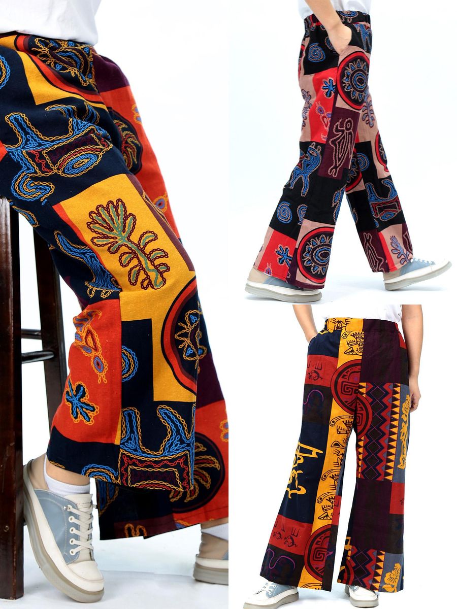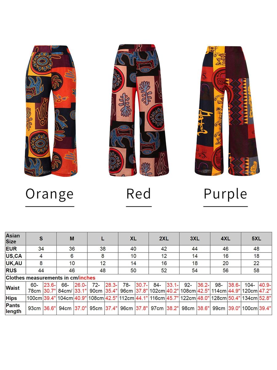 Buy Women Wide Legs Pants with Pockets Vintage Print Plus Size Casual Holiday Trousers in Nigeria