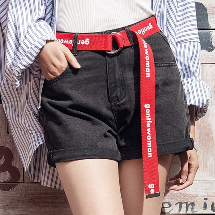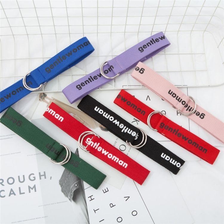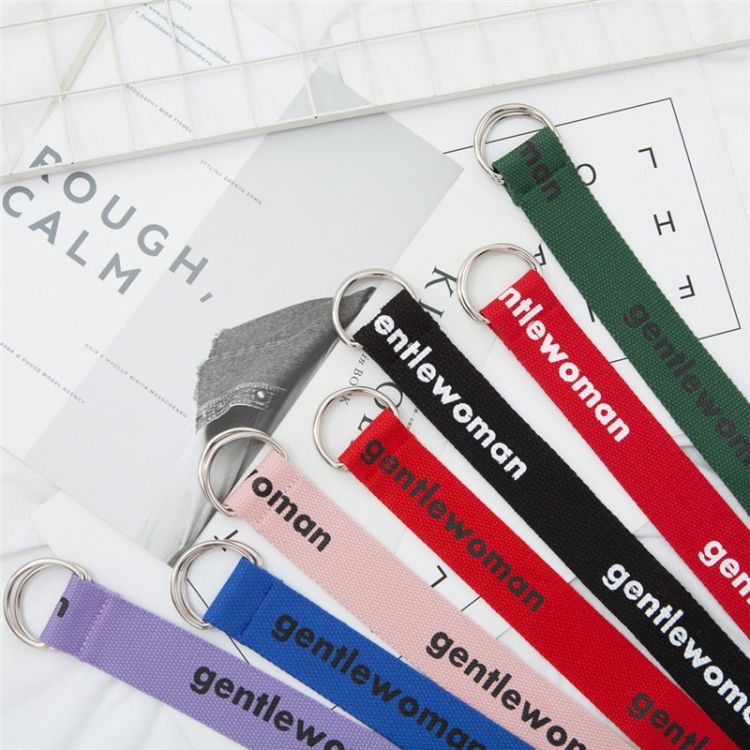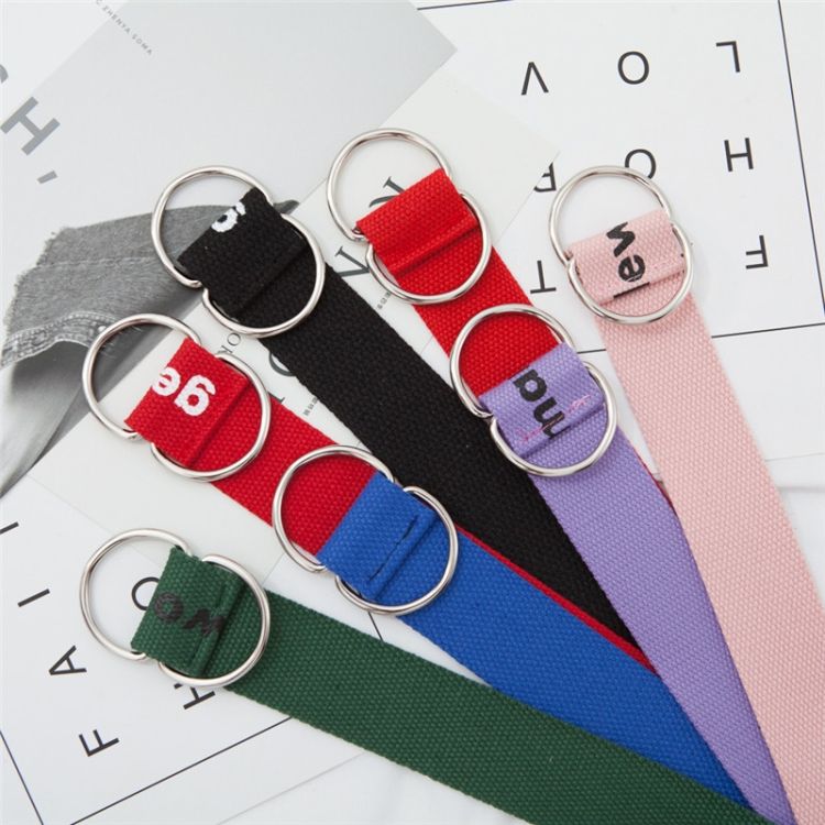 Women Wild Letter Pattern Double Loop Buckle Canvas Belt