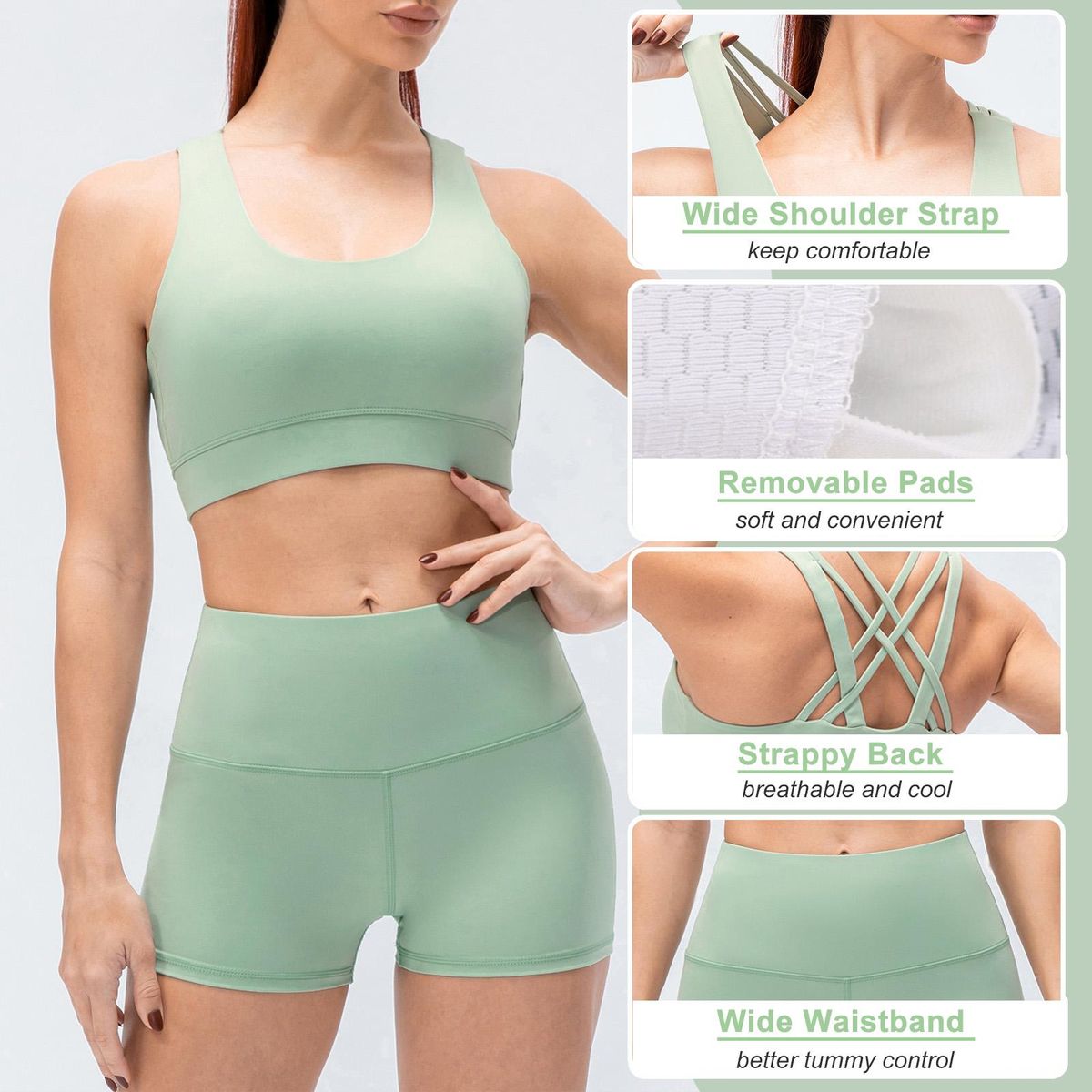 Buy Women Yoga Bra Shorts Set Padded Strappy Back Wide Waistband Workout Pilates Running Sports 2PCS in Nigeria