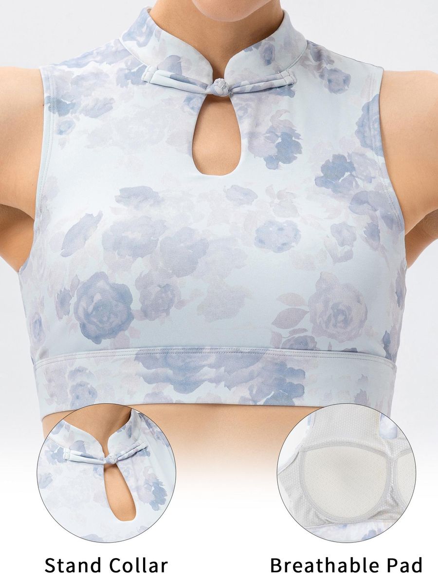 Buy Women Yoga Bra Vintage Stand Collar Button Printed Wirefree Bras Workout Jogging Casual Vest in Nigeria