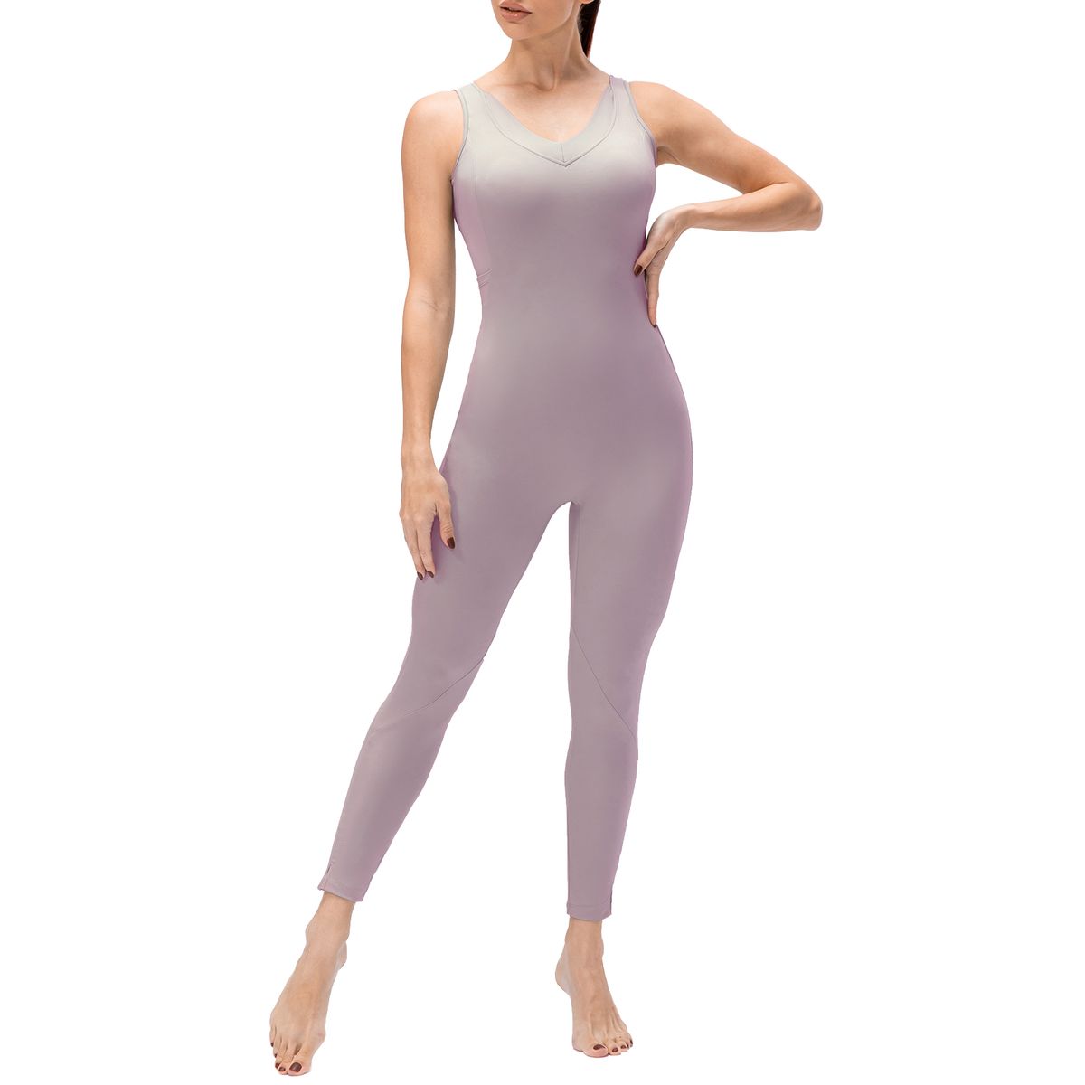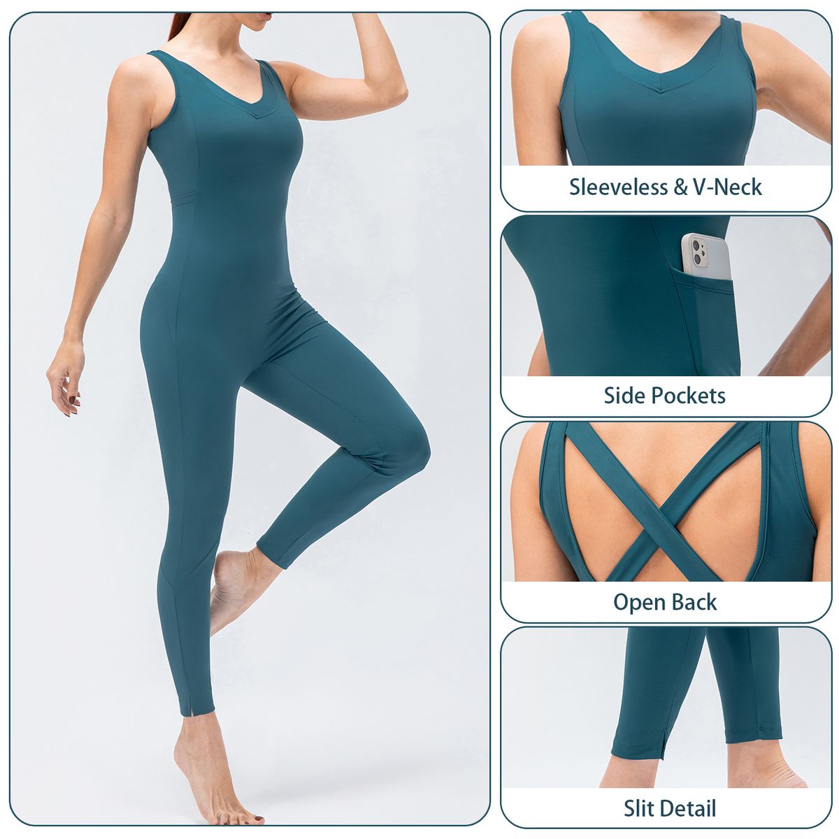 Try yoga in this one-piece bodysuit. Featuring stretchy breathable fabric, V neck, open back and slit at the hem, it provides a comfortable fit and allows you to move freely. Try it for Yoga, Pilates, or workout.