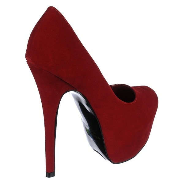 The Red Velour platform heel adds a feminine touch to an elegant dress and a stylish clutch.