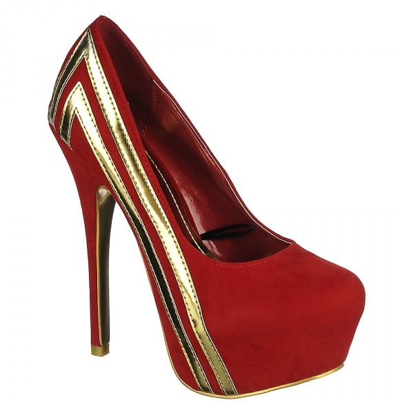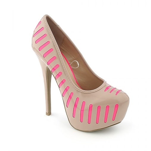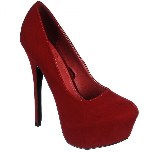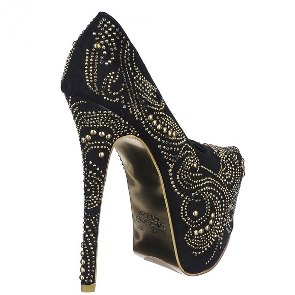 A studded platform high heel from our very own Shiekh Shoes collection. The 113 features a velvet upper, studded details, stiletto heel, almond toe front, and an easy slip on/off style. Pair off the heels with skinny jeans and a fitted blazer.