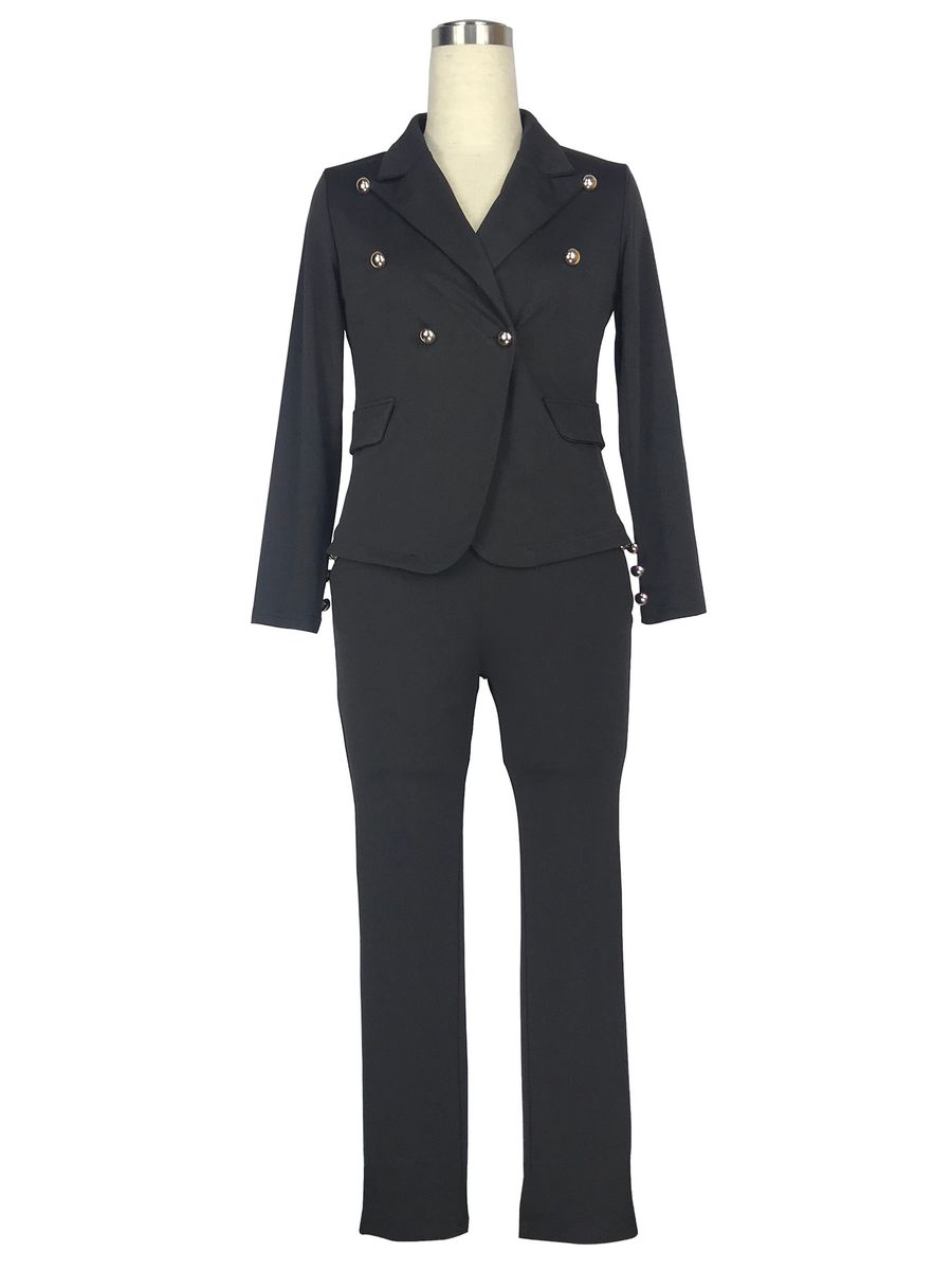 Fashion notched lapel and comfortable thick shoulder pads.Durable single button closure on the front efficiently fasten the suit.Fashion front flat pockets design,its blazer set looks elegant and exquisite.